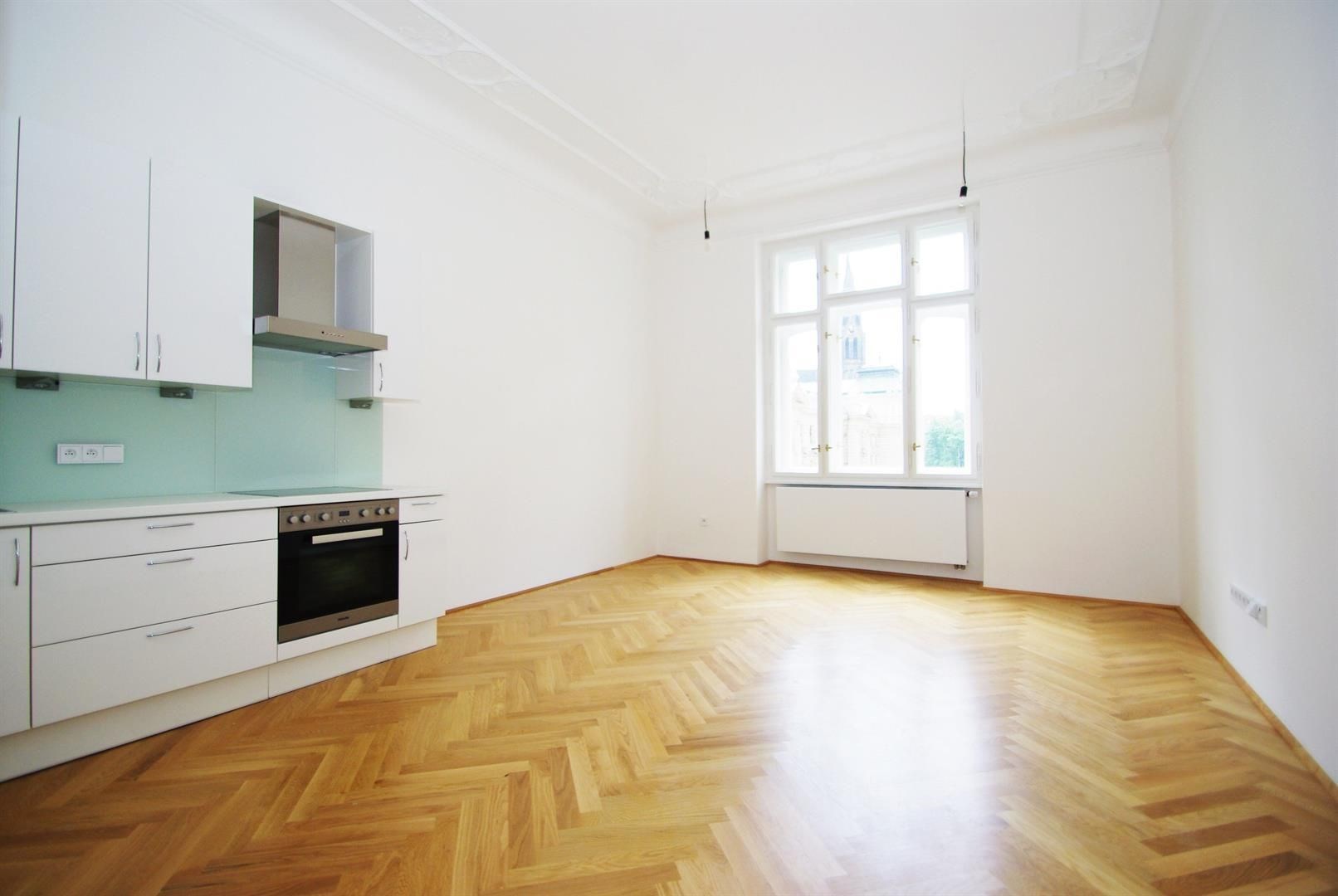 Spacious renovated 3+kk apartment (2 bedrooms, 1 bathroom), with a total area of 84.6 m2, is situated on the 3rd floor of a renovated residential building with an elevator in the prestigious area of Prague 2 - Vinohrady, Římská street.