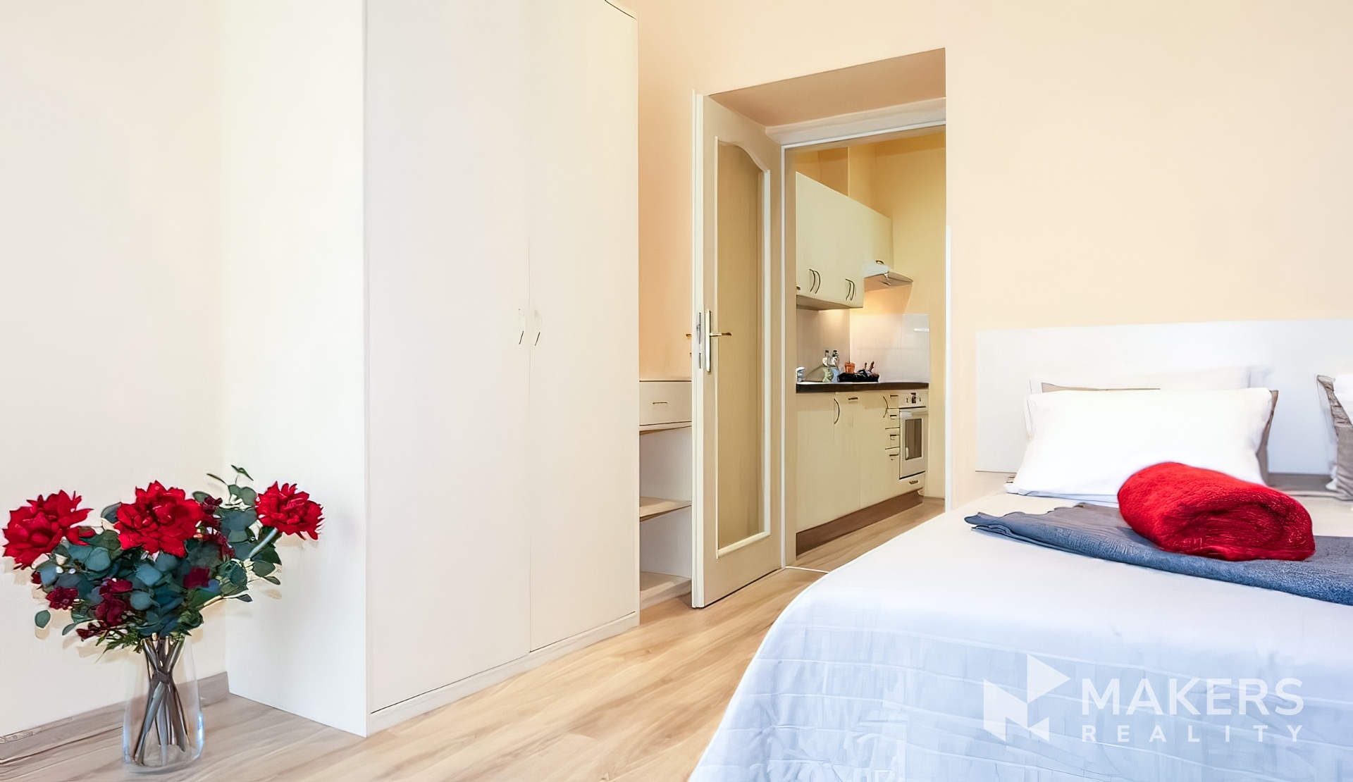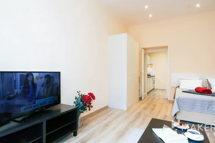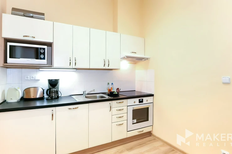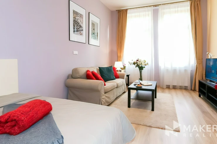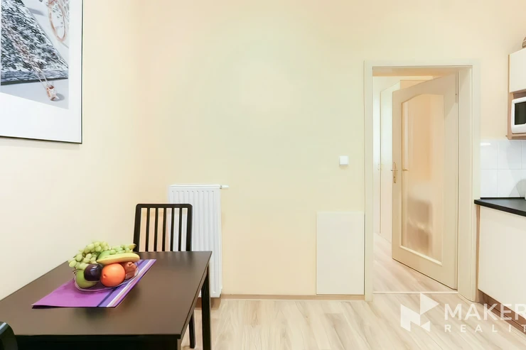 We offer for long-term rent a bright and very cozy apartment 1+1 with a total area of 40m2, located on the 4th floor of a brick building with elevator in Máchova street, Prague 2 - Vinohrady.