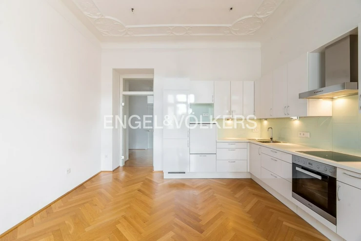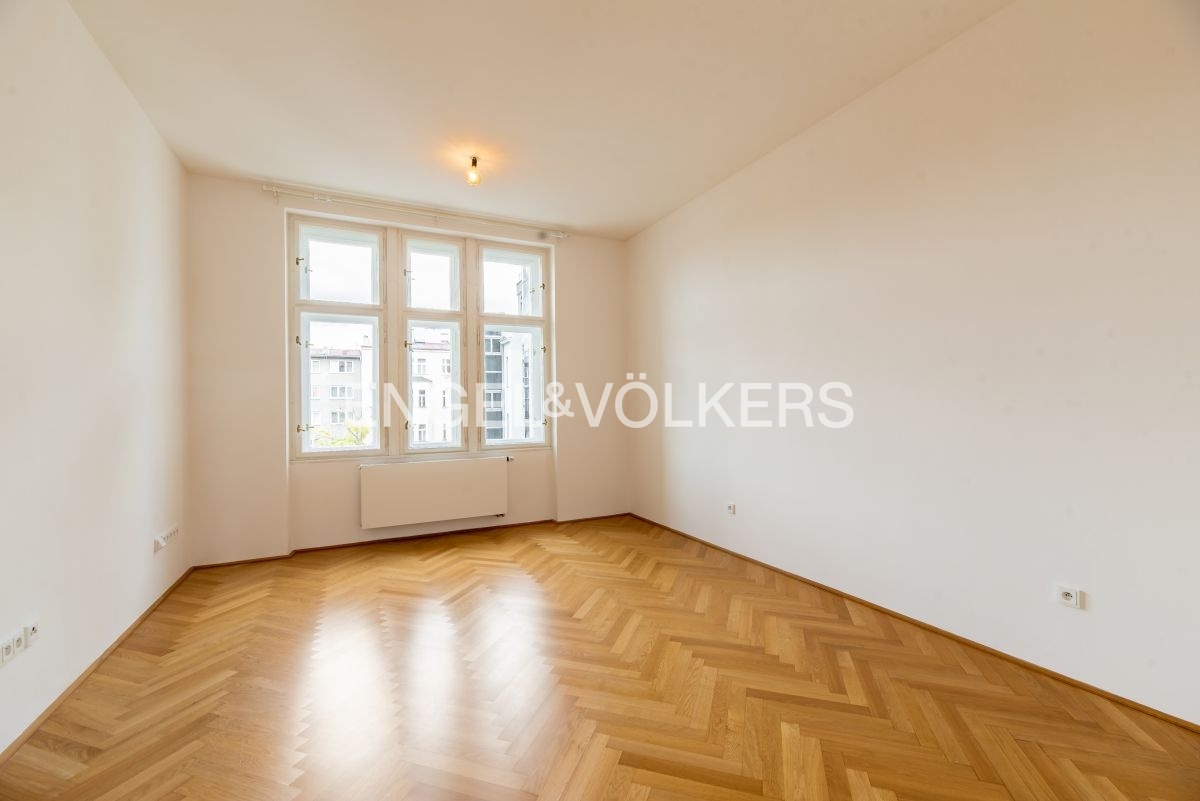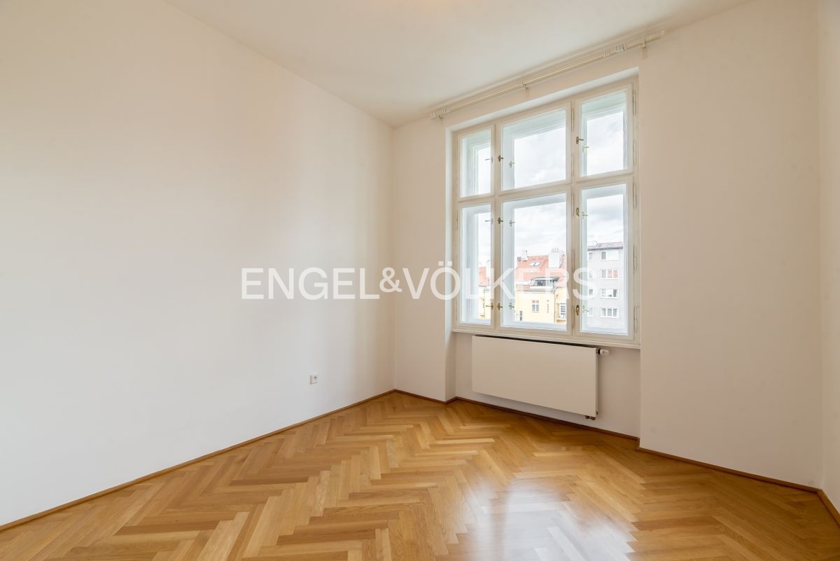 A bright and spacious apartment in a completely renovated house is ready for immediate rent. The renovation strictly preserved all the original architectural and decorative elements of Art Nouveau, both on the facade and in the common areas of the house. The apartment is located on the third floor of a building with an elevator. The heart of the whole apartment is a spacious living room with stucco ceilings, which is connected to a modern kitchen equipped with all appliances. From the main living area, there are wonderful views of the church of St. Ludmila and the Theater of Vinohrady. Both separate bedrooms are oriented to a quiet courtyard. There is a bathroom with shower and bathtub, separate toilet, and utility room. There is a cellar, which provides additional storage space. The sought-after location combines excellent transport accessibility with full civic amenities thanks to the nearby Náměstí Míru (square) and a large number of leisure activities.