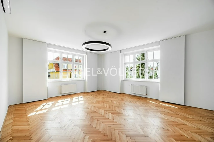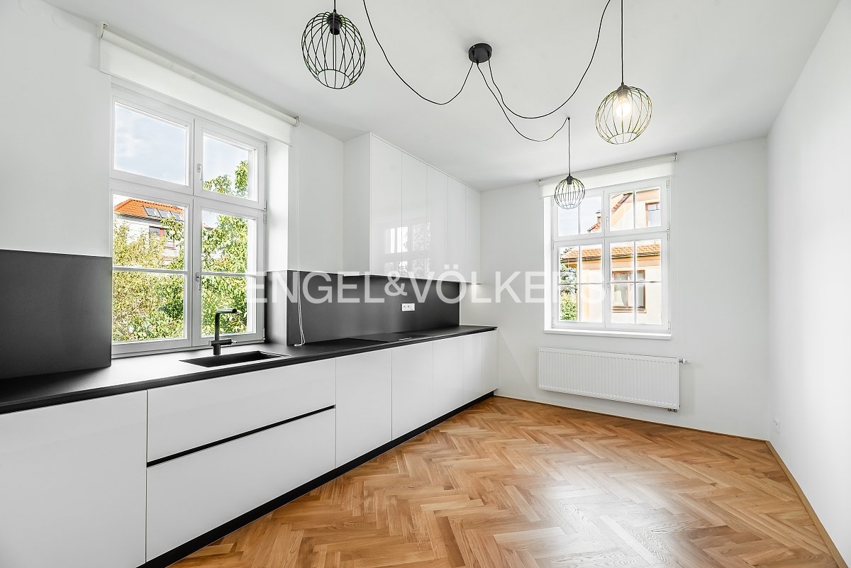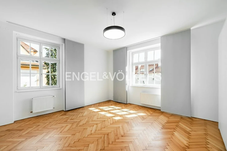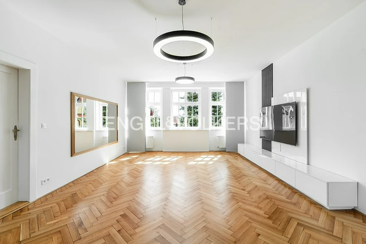 We are offering a 3+1 apartment for immediate rent, completely renovated to the highest standard. The apartment offers three spacious rooms and a separate kitchen in a designer style. All rooms are air-conditioned. The spacious living room is equipped with a low cabinet and a TV. One bedroom is equipped with a spacious wardrobe. All windows are equipped with practical sliding blinds. The kitchen is equipped with all appliances.