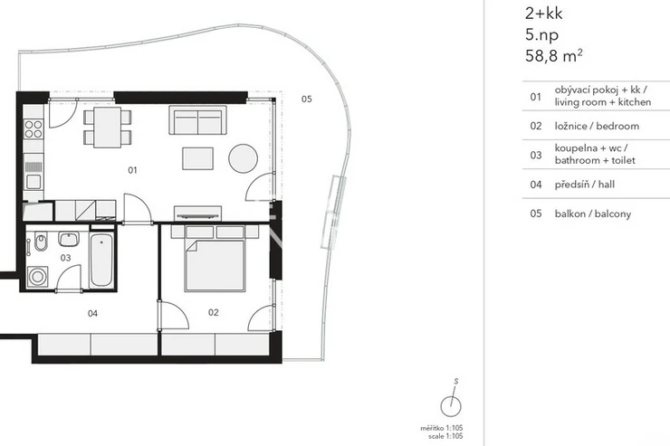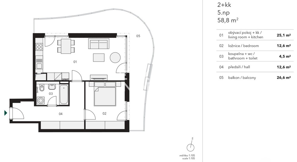 We offer a beautiful unfurnished one bedroom apartment for rent of 58,8 sqm with terrace (26,6 sqm), situated on the 4th floor of a house with elevator. The property is located in a beautiful area of Prague 5 - Stodulky having all civic amenities and good transport infrastructure (bus stop is a minute walk). There is the possibility of renting a garage parking space and a cellar for an additional fee of CZK 2,000 per month.This bright and spacious apartment for rent offers comfortable and modern living. Upon entering you are greeted by an entrance hallway with built-in wardrobe providing ample storage space. The main living area includes a living room connected to a fully equipped kitchenette with direct access to the terrace, ideal for relaxing and outdoor seating. The kitchen is equipped with modern appliances (induction hob, steam oven, fridge, freezer, microwave and dishwasher). The apartment has one bedroom which also offers direct access to the terrace which provides plenty of light. The bathroom is equipped with a bathtub and a toilet. In addition, the apartment is equipped with a smart home.The district consists of mostly new apartment buildings and has excellent transport accessibility. There are bus stops and a metro station Stodulky inside the locality. By car you can reach the motorway in 3 minutes, the Vaclav Havel International Airport in 12 minutes, the Metropole Zlicin shopping and entertainment centre in 5 minutes. In the area you will find all civic amenities - kindergartens and primary schools, gymnasium, restaurants, supermarkets, pharmacies, polyclinic, playgrounds, post office. For leisure activities you can use the nearby Toboga Fantasy Park, Bodyking fitness, basketball hall, football and volleyball courts, tennis courts, outdoor gyms and bike paths. You can go for a walk in the Panska zahrada, through the valley of the Motolsky brook or cycle to the Stodulecky pond.The amount of billable monthly deposits is CZK 4 323 + electricity.The inquiring client agrees to pay a commission of 1 month's rent plus VAT. If you cannot view the property in person, we also offer you a video tour from the comfort of your home in real time via Messenger, WhatsApp and other communication platforms.