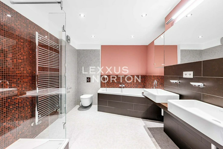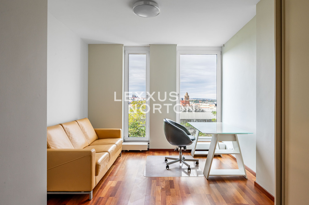 We offer for rent a modern furnished, fully air-conditioned 3-bedroom apartment with an area of 134 sqm with an 11 sqm terrace and a 5 sqm balcony, located on the 1st floor of a building with an elevator in the Rezidence Riegrovy sady project in Prague 2 - Vinohrady. Riegrovy sady and Havlickovy sady parks in the immediate vicinity add to the attractiveness of the location. The apartment offers a unique view of Prague Castle.The layout of the apartment includes an entrance hall, living room with a fully equipped kitchenette and dining area, three separate bedrooms, and two bathrooms. A parking space in the garage is available for a monthly fee of CZK 5,000. The residence offers a high level of comfort and excellent transport links. The residence has a reception desk, which ensures comfortable living and a higher level of service.The kitchenette is fully equipped with a ceramic hob, oven, refrigerator, freezer, and dishwasher. The apartment has two bathrooms – one with a whirlpool tub, shower, and toilet, the other with a shower and toilet. Thanks to the large French windows, the apartment is very bright. The interior of the apartment is complemented by wooden floors, built-in wardrobes in all bedrooms, a washing machine, and a dryer.A property in Vinohrady, one of the most desirable Prague locations. It has a great position where everything you need can be found within a 10-minute walk. The area has excellent transport links - 2 metro stations - namesti Miru and I.P. Pavlova, several tram lines and buses. You can get to Vaclavske namesti in just 5 minutes by public transport. The road links are also good. The motorway ring road can be reached in just 12 minutes and Vaclav Havel Airport in 27 minutes by car. In the building’s vicinity you can find complete civic amenities - a pharmacy, medical centre, post office, supermarkets, offices, banks, local shops, restaurants and bars. There are kindergartens, primary and secondary schools, a university and children’s playgrounds nearby. You can use Havlickovy and Riegrovy sady with their beautiful views of Prague for leisure activities.The amount of billable monthly deposits is 5 000 CZK + electricity and gas are transferred to the tenant.The inquiring client agrees to pay a commission of 1 month's rent plus VAT. If you are unable to view the property in person, we also offer you a video tour from the comfort of your home in real time via Messenger, WhatsApp and other communication platforms.