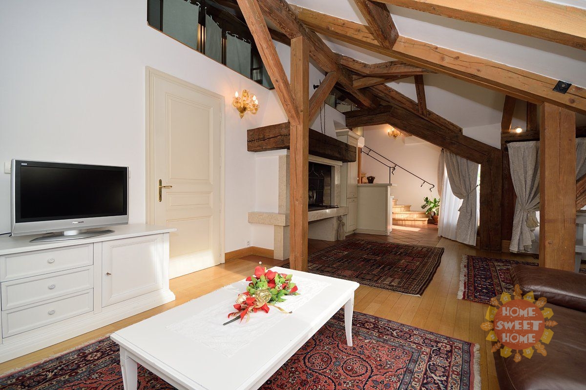 We offer for rent a luxury duplex apartment 3 + kk after reconstruction with a total area of 128m2 , located on the 5th floor of an Art Nouveau building with elevator in Truhlářská street, just a few steps from the Republic Square. The apartment has preserved original elements, exposed beams of solid wood and is fully furnished with Italian style furniture. The apartment has 2 bedrooms (one of the bedrooms is facing the courtyard and the other is located in the open gallery together with the study), a living room with a dominant stone fireplace and access to the terrace, a fully equipped kitchen including crockery and cutlery. Bathroom with corner massage bath, washing machine, bidet and toilet. High quality Italian bed linen and towels are provided and regular cleaning can be arranged. Short-term rentals are also possible. In addition, secure parking spaces in the underground garage in the Italian Street can be rented from 5.000,-CZK per month + VAT.