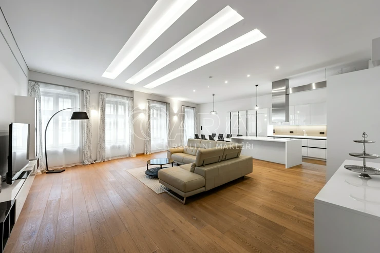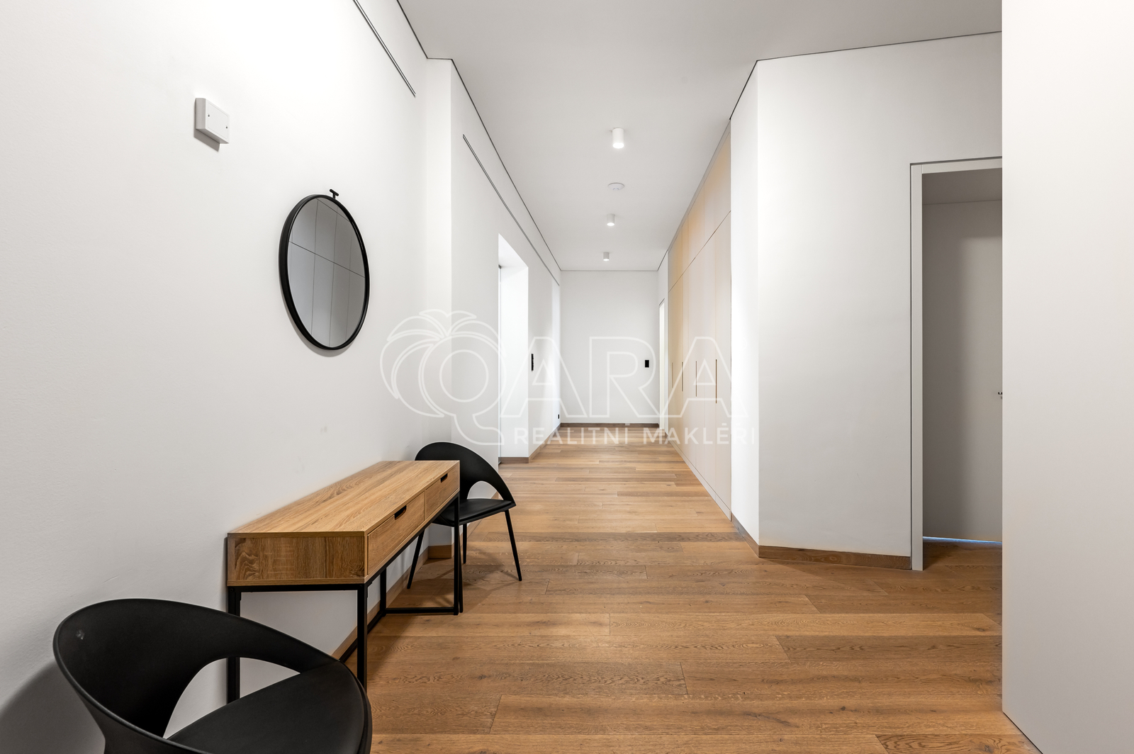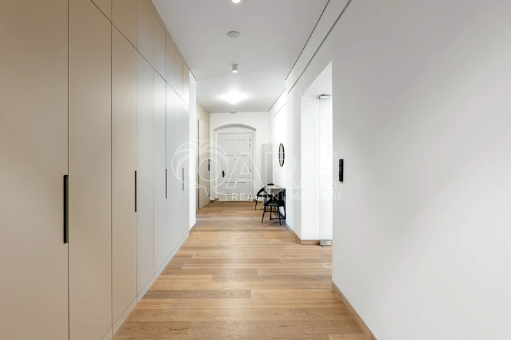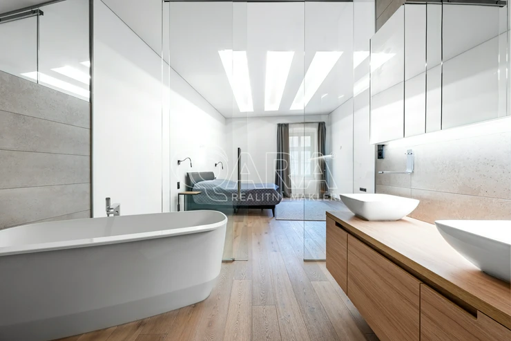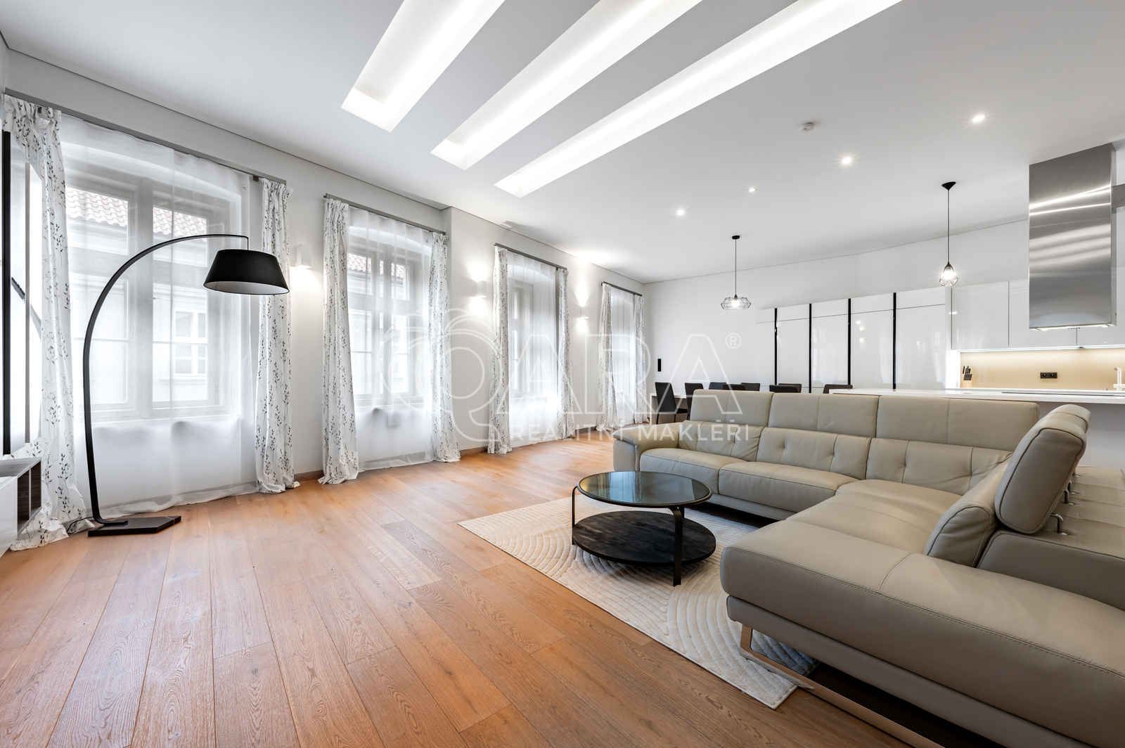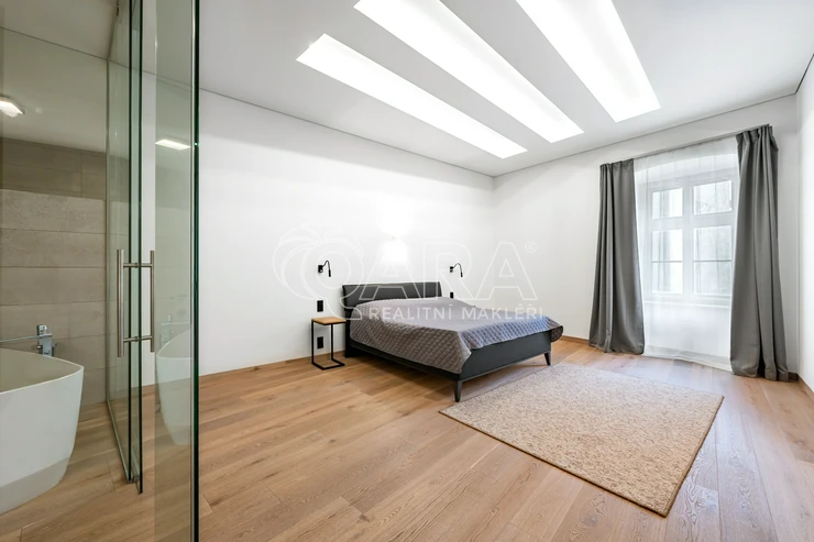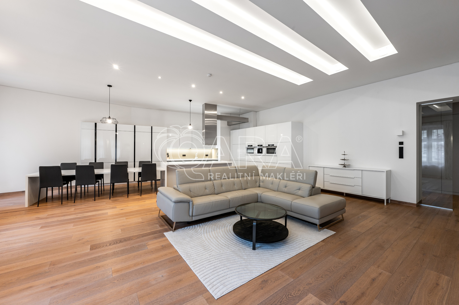 A designer, top-equipped luxury apartment, 3+kk, 186m² on the 1st floor of a lavishly renovated residence. The location in the heart of the metropolis is perfectly accessible by public transport, car, and bike, offering surprisingly quiet and pleasant urban living with all amenities in close proximity.