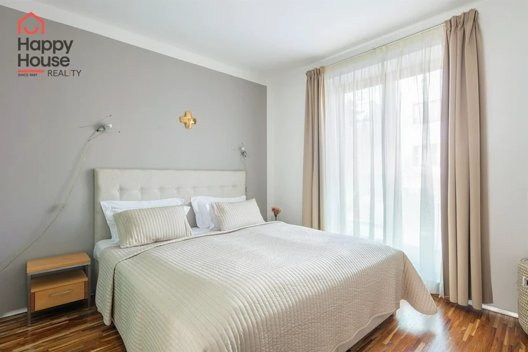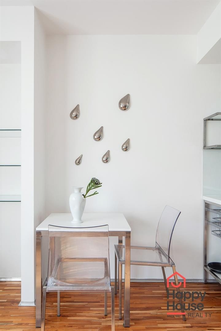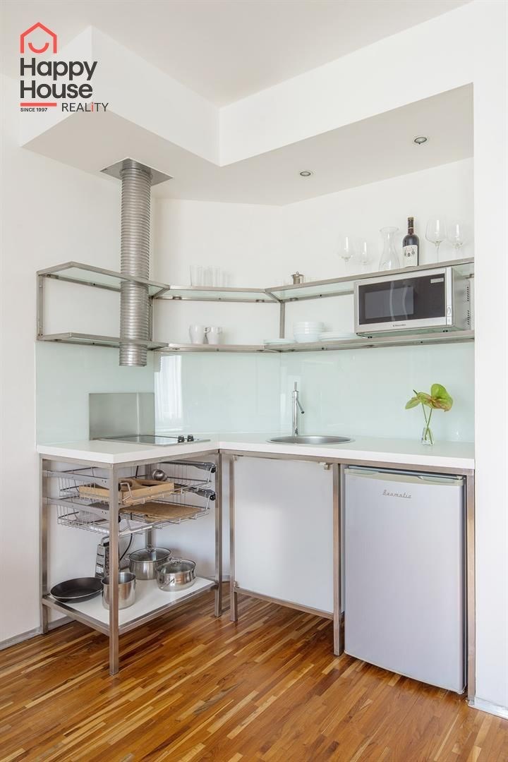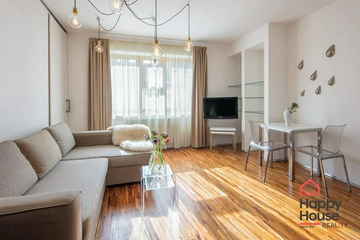 We offer comfortably furnished one-bedroom apartments located on the 1st to 3rd floors of a Secession-style brick building with an elevator. The apartments consist of a separate bedroom with a double bed, wardrobe or dressing area, and a living area with a sofa bed. Each apartment features a fitted kitchenette, a dining area, and some have a dishwasher, a bathroom with a shower or bathtub, and a separate toilet. TV/SAT and reliable, high-speed internet are available. The floors are parquet and tiles. The building has a gas boiler room. Street parking - zones. The apartment is located in a sought-after area, between Bertramka, Klamovka, Sacré Coeur, and Petřín parks. A short walk from the house is the U Zvonu tram stop and 4 minutes to the Anděl metro station or to the Nový Smíchov shopping center, where you can find everything from shops, fitness centers, and restaurants, to a multiplex cinema. The rent includes utilities, energy, wifi, cleaning once a week with a change of bed linen and towels, use of the laundry room in the house, reception 9-16/7 and a 24/7 emergency service, refundable security deposit is one month's rent. An energy performance certificate is not available, thus it is listed as class G.
