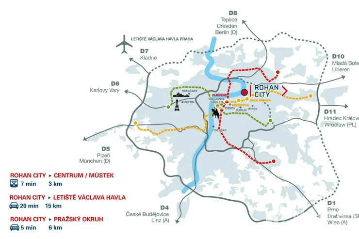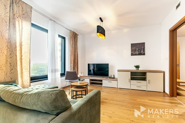 We offer for rent an elegant 2+kk apartment with a floor area of 60 m², located on the 3rd floor of the modern residential complex Rohan City – Riviéra Karlín. This prestigious location on the banks of the Vltava River perfectly combines urban living with peace and nature. The area boasts excellent transport accessibility and complete civic amenities.