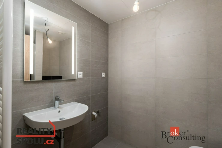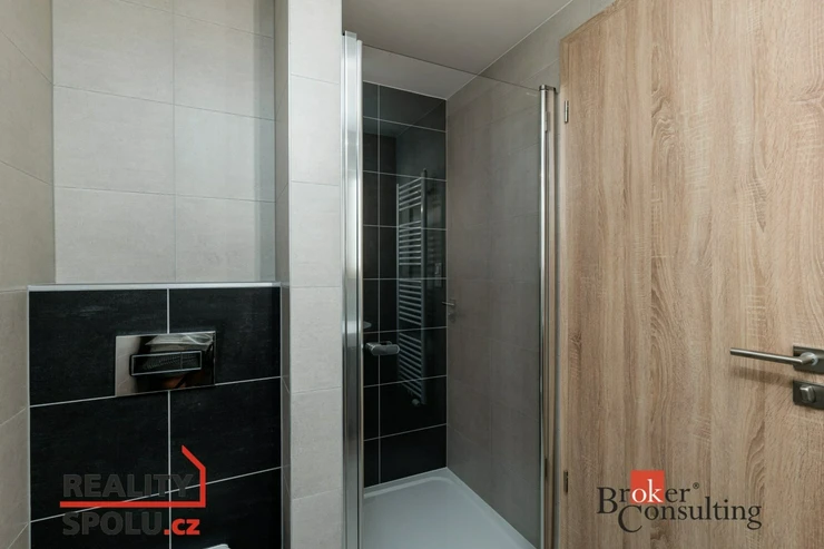 V bytě se nachází vstupní chodba pro umístění skříní, koupelna se sprchovým koutem a toaletou.