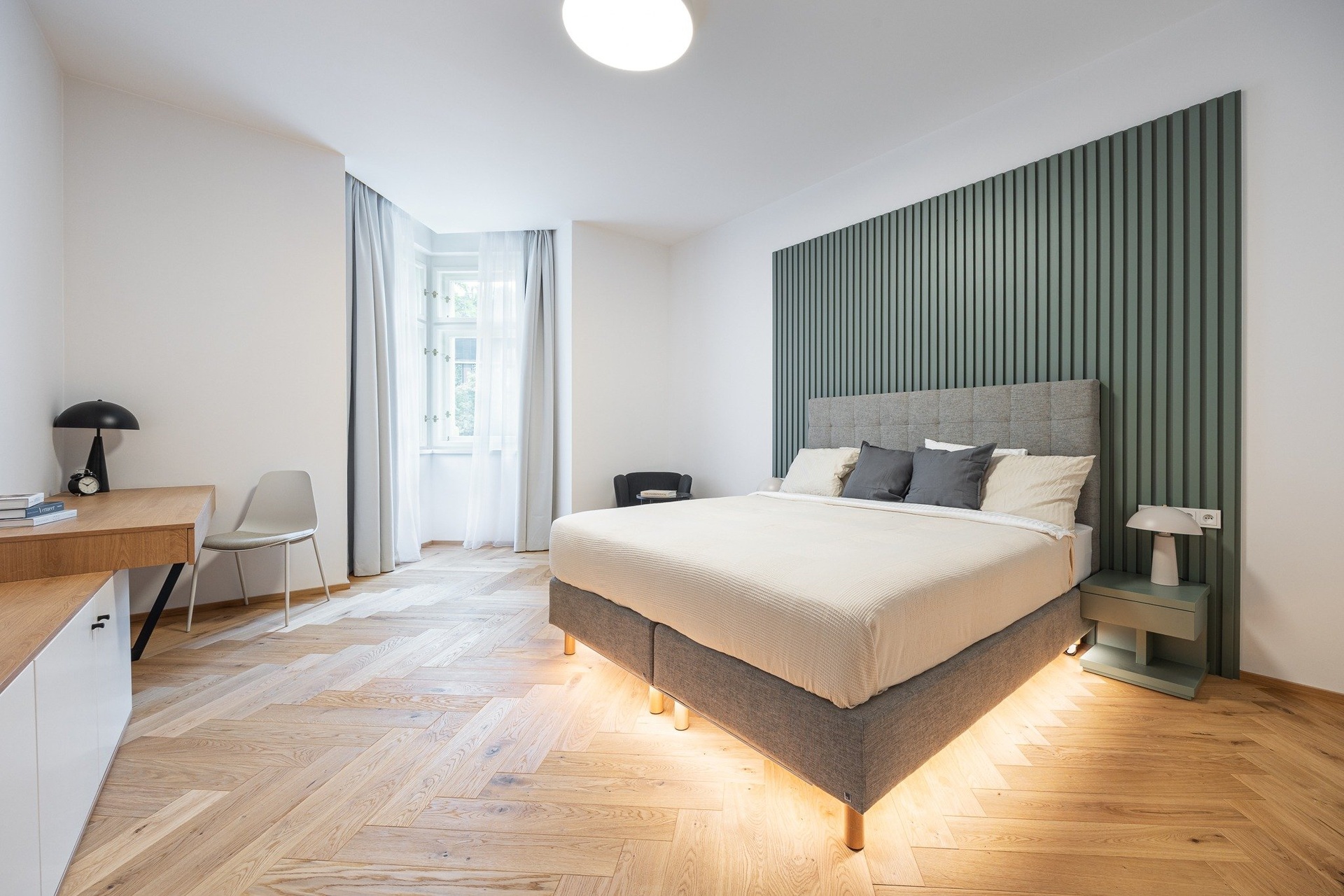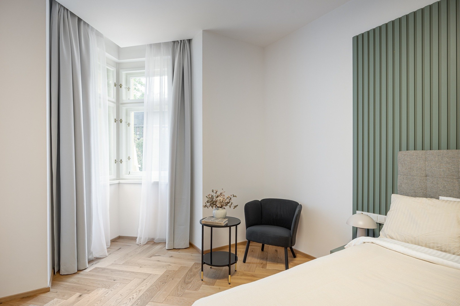 Rent a modern, fully furnished apartment in the Sovova 3 project, located at Sovova 503/3, Karlín, Praha 186 00.