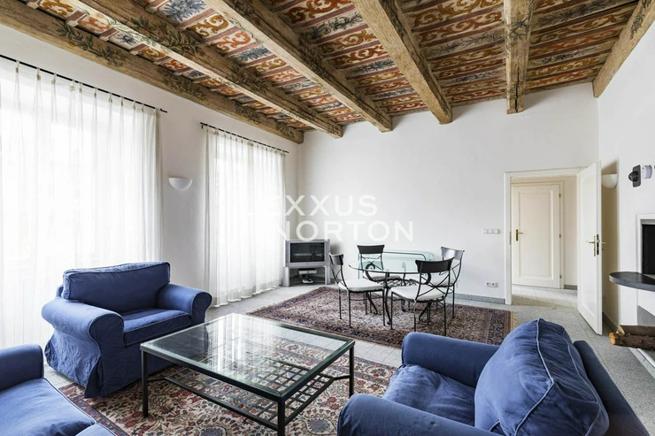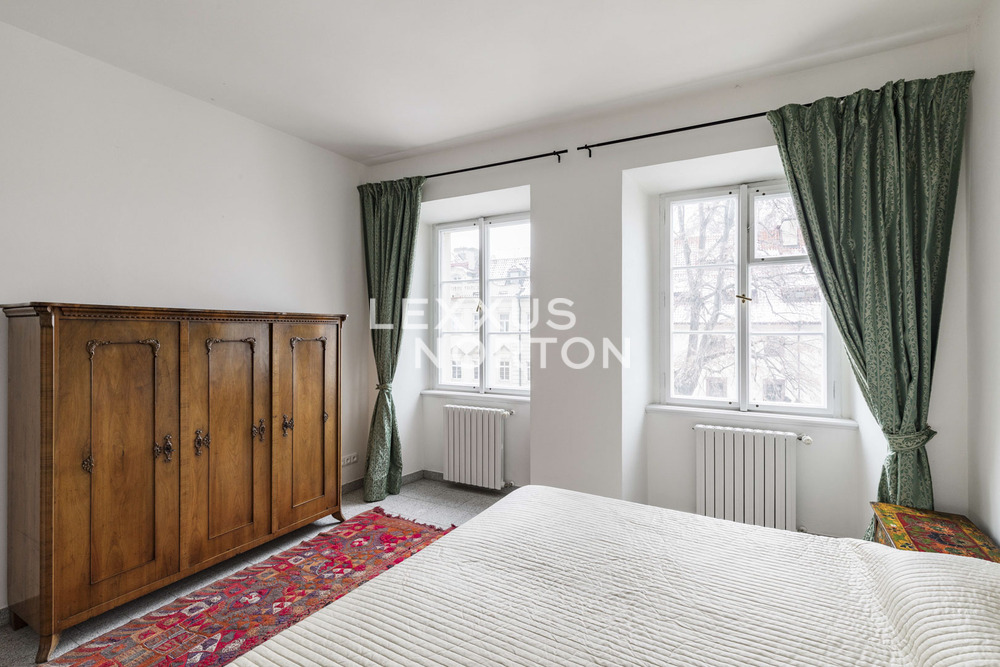 We offer for rent a fully furnished 2-bedroom apartment located on the 1st floor. The property is located in an attractive location in Prague 1 - Mala Strana, which offers all civic amenities and excellent transport accessibility.Fully furnished stylish apartment for rent in a renovated historic building offers an entrance hall, a luxurious and spacious living room with a fully equipped kitchenette and dining area, 2 bedrooms, and 2 bright bathrooms. The kitchenette is equipped with a ceramic hob, oven, refrigerator, freezer, microwave, and dishwasher. The two bathrooms have a bathtub, shower, bidet, and toilet. The apartment is furnished in Italian style, with beautiful painted ceilings, oriental carpets, antique and modern furniture, and stone floors. Satellite TV and internet connection are included, and there is an elevator throughout the building.It is a very attractive location, which is full of luxury shops, cafes and restaurants, just a few steps from Malostranskeho namesti, Prague Castle or Charles Bridge. Complete civic amenities, excellent transport accessibility. Views of Hroznova street, spacious airy rooms, large windows, high ceilings, stuccoes, double doors. Suitable for demanding clients. This housing offers an excellent access to international schools (ISP / France Lyceé, Prague British School) and Vaclav Havel Airport.The amount of billable monthly advances is CZK 2 500 + electricity and gas is transferred to the tenant.The inquiring client agrees to pay a commission of 1 month's rent plus VAT. If you cannot view the property in person, we also offer you a video tour from the comfort of your home in real time via Messenger, WhatsApp and other communication platforms.