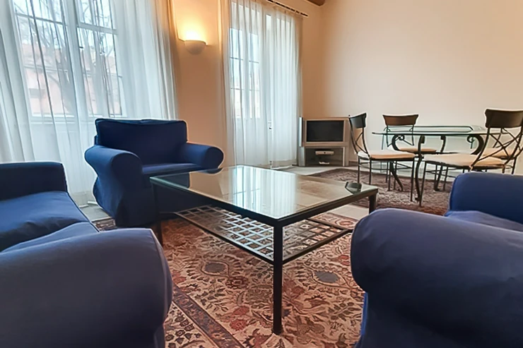 We are pleased to offer for rent a stylishly furnished 3-bedroom apartment (3+1) located in a truly unique setting — right in the heart of Malá Strana, just a few steps from Charles Bridge, Kampa, and Čertovka.