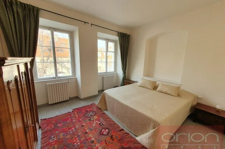 We offer for rent a luxurious fully furnished two bedroom apartment on the 2nd floor of a historical house in Prague 1 - Malá Strana, in a quiet street near Charles Bridge. The total area of the apartment is 73 sqm and offers an entrance hall, living room with dining room and fireplace, fully equipped kitchen, 2 bedrooms (one with private bathroom), guest bathroom. The apartment's equipment with preserved original features includes stylish furniture, built-in wardrobes, wooden parquet and tile floors, carpets, original painted beamed wooden ceiling, security door, gas boiler, washing machine, dryer, TV, alarm, elevator. Charming historical location on Kampa Island a few steps from Charles Bridge, within walking distance of Prague Castle and the Old Town. The historic original house was built over the centuries, during the Gothic, Renaissance and Baroque periods. Sensitive reconstruction from the beginning of 2000 preserved all architectural elements. The house is a UNESCO World Heritage Site. Sought-after location with all amenities. In the immediate vicinity there are shops, cafes, pubs, bistros, restaurants, bars, concert halls, jazz bars, antique shops. Within walking distance is the Malostranská tram and metro station. Pets are welcomed. Security deposit 3 months rent.