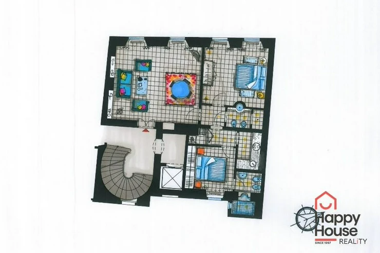 The district offers plenty of attractive places, such as “Kampa” park, “Vltava” river, Charles Bridge, saint Nicholas Church, “Malostranské” Square and many signature buildings and historical palaces. In the vicinity, you will find parking, tram stop, metro station, groceries, cafes, pubs, restaurants, concert halls, jazz bars, antiques etc.