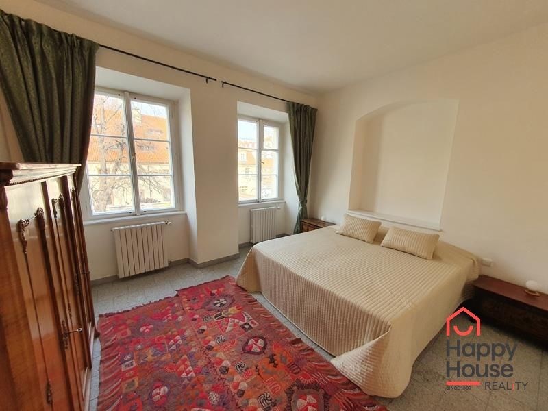 Completely furnished two bedroom apartment (73 sqm) on the second floor of a brick building. This historical building “Dům u hnědého koníčka” is located on “Kampa” Island, in the heart of “Malá Strana” of Prague 1. Breath taking, romantic apartment with original wooden painted ceiling is dated to baroque era, luxurious furniture, oriental carpets. Entrance hall, spacious living room with dining room, fireplace, two sofas, TV with satellite, DVD and view of Prague Castle, completely equipped modern kitchen, 2 bedrooms, 2 bathrooms (bathtub, toilet, bidet and shower, toilet, bidet). Central heating. Street parking - zones.