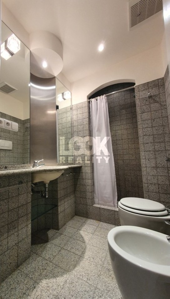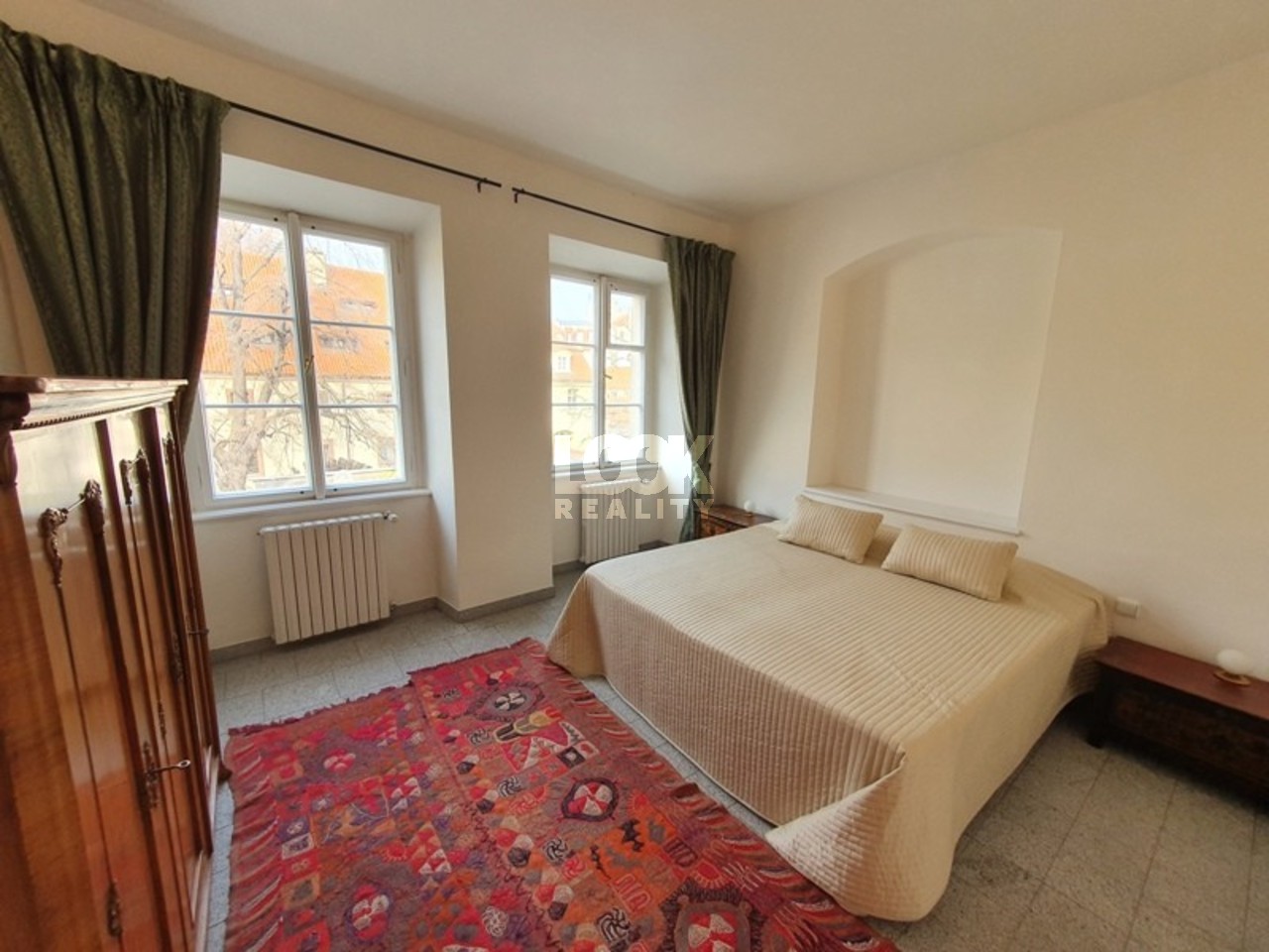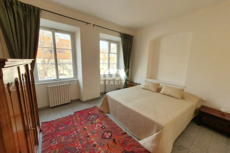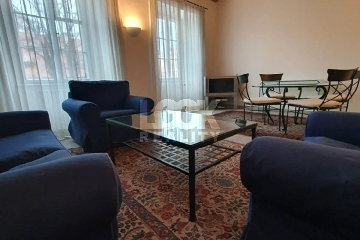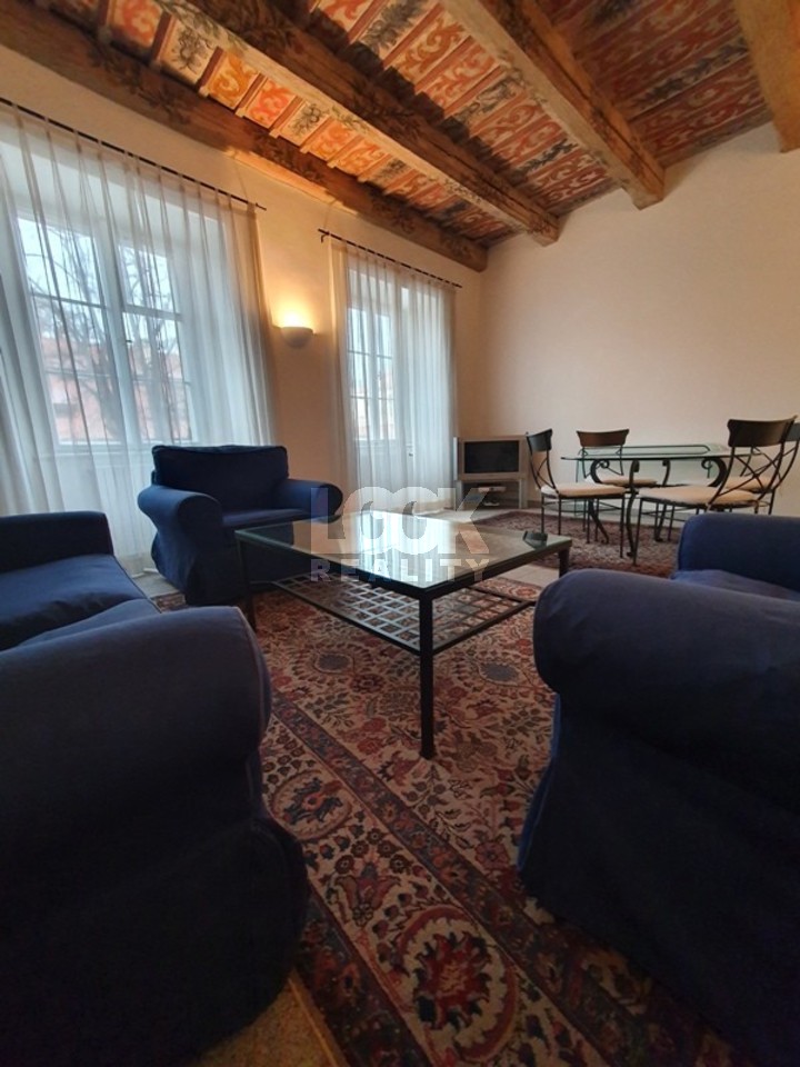Beautiful apartment with an original wooden painted ceiling from the Baroque period near the city center. We offer for rent a beautiful 3+1 apartment with a total area of 73 m2, which is located on the 2nd floor of a building in the street Hroznova. The apartment is rented fully furnished with luxury furniture and consists of a living room with a dining room, 2 bedrooms, 2 bathrooms and a kitchen. The kitchen is equipped with all appliances. Entrance through the living room with two sofas and a view of Prague Castle, TV with satellite programs and DVD. Separate sleeping area with 2 bedrooms and 2 bathrooms (one with a shower, the other a stylish romantic bathroom with a bathtub. Pets are allowed. Excellent transport accessibility. The tram stop Malostranske namesti (tram 22, 20, 15) and station metro A (Malostranska) is a few minutes' walk away. Complete civic amenities on site. The apartment is located in a beautiful romantic part of Prague near the Charles Bridge and near other sought-after monuments. Very nice living. We recommend. The price for short term rental could be changed.