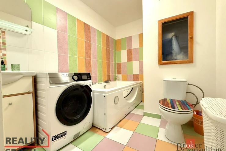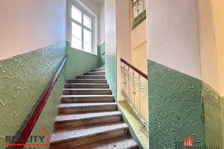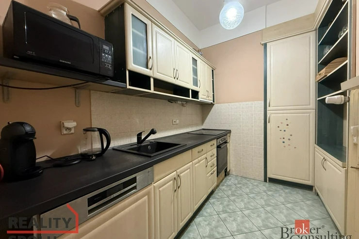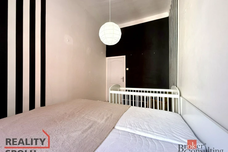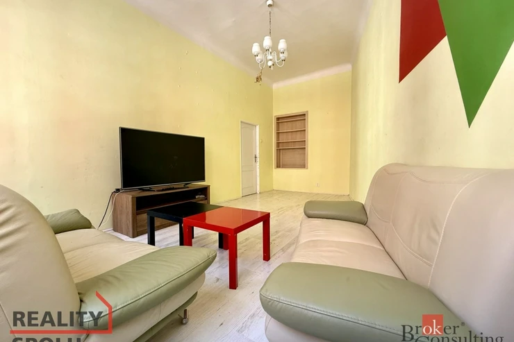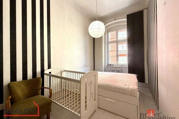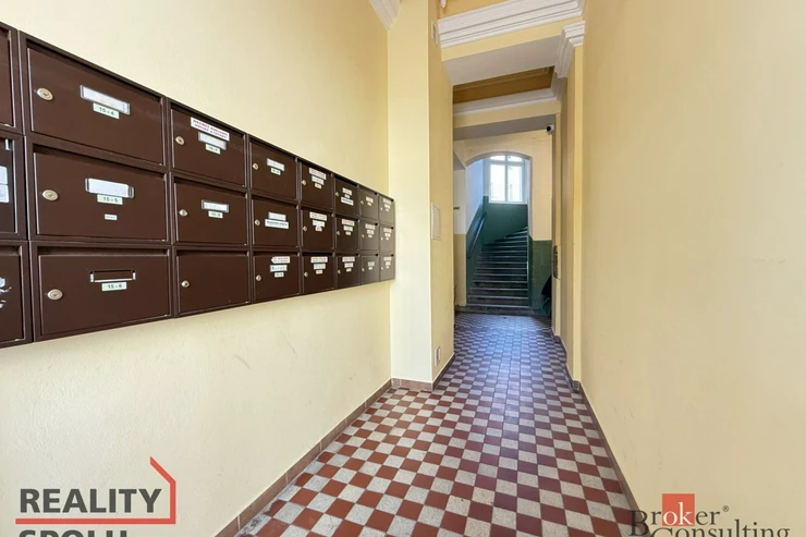 Jedná se o bytovou jednotku ve staré zástavbě, dům je v udržovaném stavu. Bytová jednotka se nachází ve 3. nadzemním podlaží bez výtahu a nabízí výhled na ulici směrem k parku, orientována je na východ. Disponuje obývacím pokojem o výměře 19m2 a ložnicí s výměrou 10m2. Zařízení na fotografiích v těchto dvou pokojích může být ponecháno k užívání nájemci. Velkou předností je prostorná a světlá koupelna, nad kterou lze využít malý úložný prostor, ve vstupní chodbě jsou k dispozici vestavěné skříně. Kuchyňský kout je plně vybaven. Domácí spotřebiče jsou také k dispozici nájemci. K bytové jednotce není sklepní kóje.