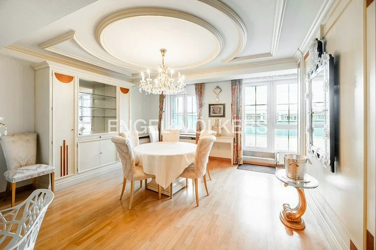 The apartment is air-conditioned. The building has an elevator. A parking space in the courtyard can be rented for an additional fee. The apartment is available for immediate occupancy.
