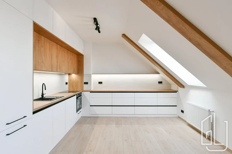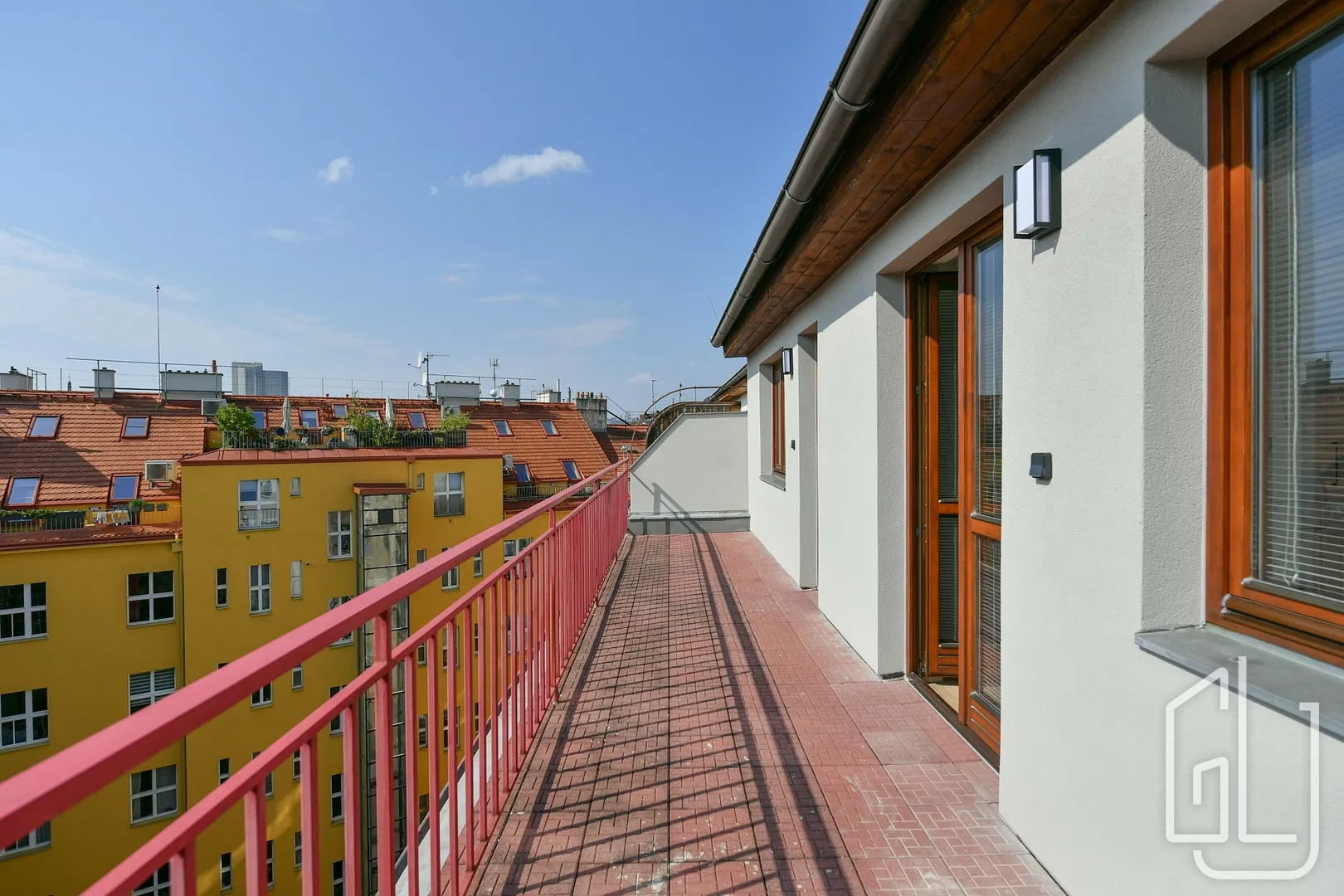 GLJ Partners Vám nabízí k pronájmu světlý a prostorný mezonetový byt 4+kk o celkové ploše 108 m s terasou 20 m, situovaný v 5. (posledním) patře kompletně zrekonstruovaného cihlového domu s výtahem.