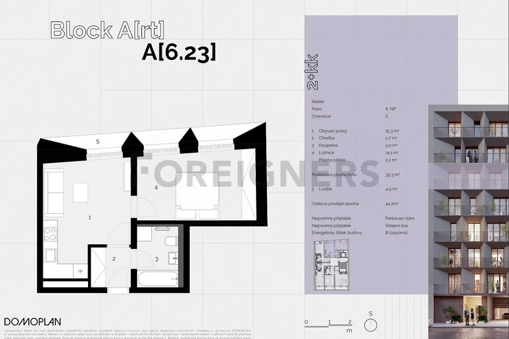 We offer for rent a stylish, fully furnished 1-bedroom (2+kk), located in the new residential complex Pekárenský dvůr, ART block, on Bratislavská Street in Brno.