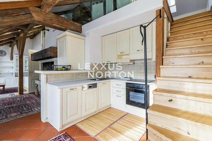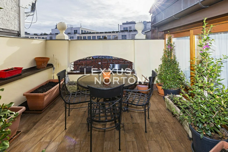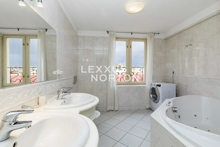 Stylish, furnished attic apartment of 126.8 sqm for rent on the 5th floor in Prague 1 - Nove Mesto. Comfortable living in a location that provides everything the big city has to offer. The luxurious two bedrooms apartment in a beautiful reconstructed house with elevator has a magnificent living room with a fireplace, a fully equipped modern kitchenette (an oven, a fridge, a freezer, a dishwasher, a ceramic hob), a neat dining area and a calm terrace with seating. Also 2 picturesque bedrooms and a unique bathroom with a bathtub, shower, sink, bidet and toilet. The apartment is also fully furnished and has internet access and air conditioning. Available from January 31, 2026.The apartment is fully furnished and offers a living room with sofas, an armchair, a coffee table. The kitchen with a dining area is equipped with an oven, a ceramic hob, a fridge with a freezer, a dishwasher, a microwave, and a dining table. Both bedrooms are equipped with beds, bedside tables, and storage space. The apartment has two bathrooms – one with a bathtub and toilet, the other with a shower and bidet.Attractive location in Truhlarska street is full of luxury shops, cafes and restaurants, just few steps from namesti Republiky and Palladium shopping center. This prestigious location also offers complete civic amenities and excellent transport accessibility to Metro B. Views of Truhlarska street, spacious airy rooms, large windows, high ceilings, stuccoes, parquet floors, double doors. Suitable for demanding clients. This housing has excellent access to international schools (ISP / France Lyceé, Prague British School) and Vaclav Havel Airport.Charges for utilities , internet and energies 550 EUR/month. + VATThe interested client has been made aware of the payment of commission in the amount of one month's rent plus VAT.If you are unable to view the property in person, we also offer you a video tour from the comfort of your home in real time via Messenger, WhatsApp and other communication platforms.