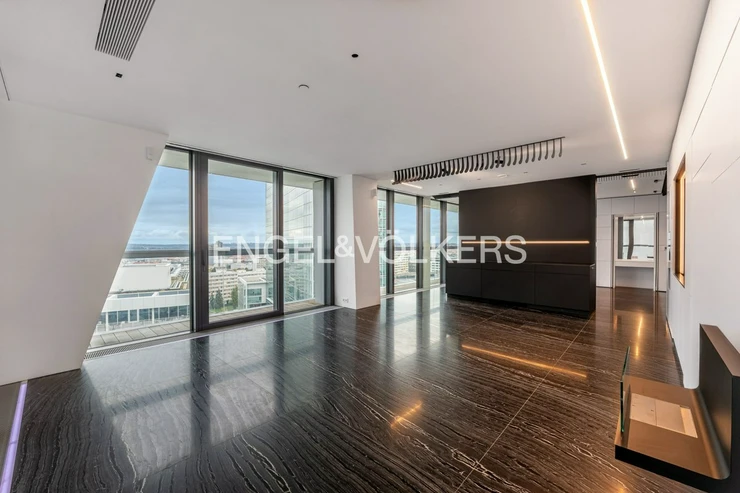 We offer for rent an exceptionally spacious and premium furnished 3+kt apartment with an area of 160 m², located on the 15th floor of the middle tower of the prestigious V Tower residence – the tallest and most exclusive residential building in Prague. The apartment boasts a terrace surrounding the entire apartment, offering breathtaking panoramic views of Prague and access from every living room.