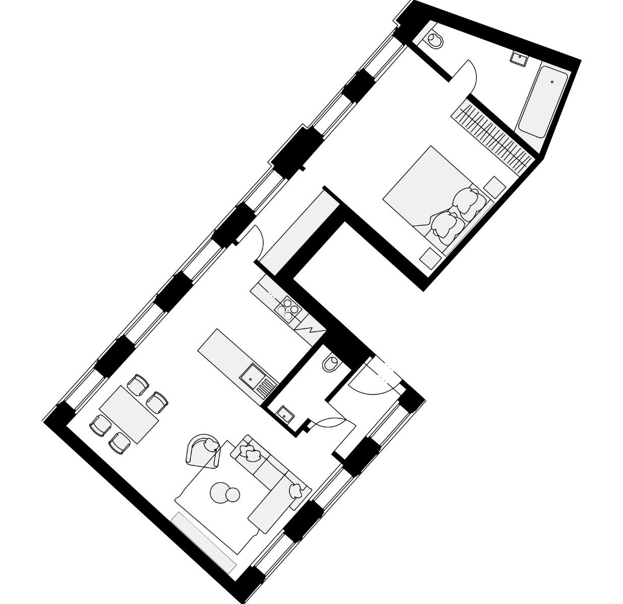Bright 2-room apartment (2+kk) with 61.6 m², located on the 3rd floor. Unfurnished and available for immediate move-in.