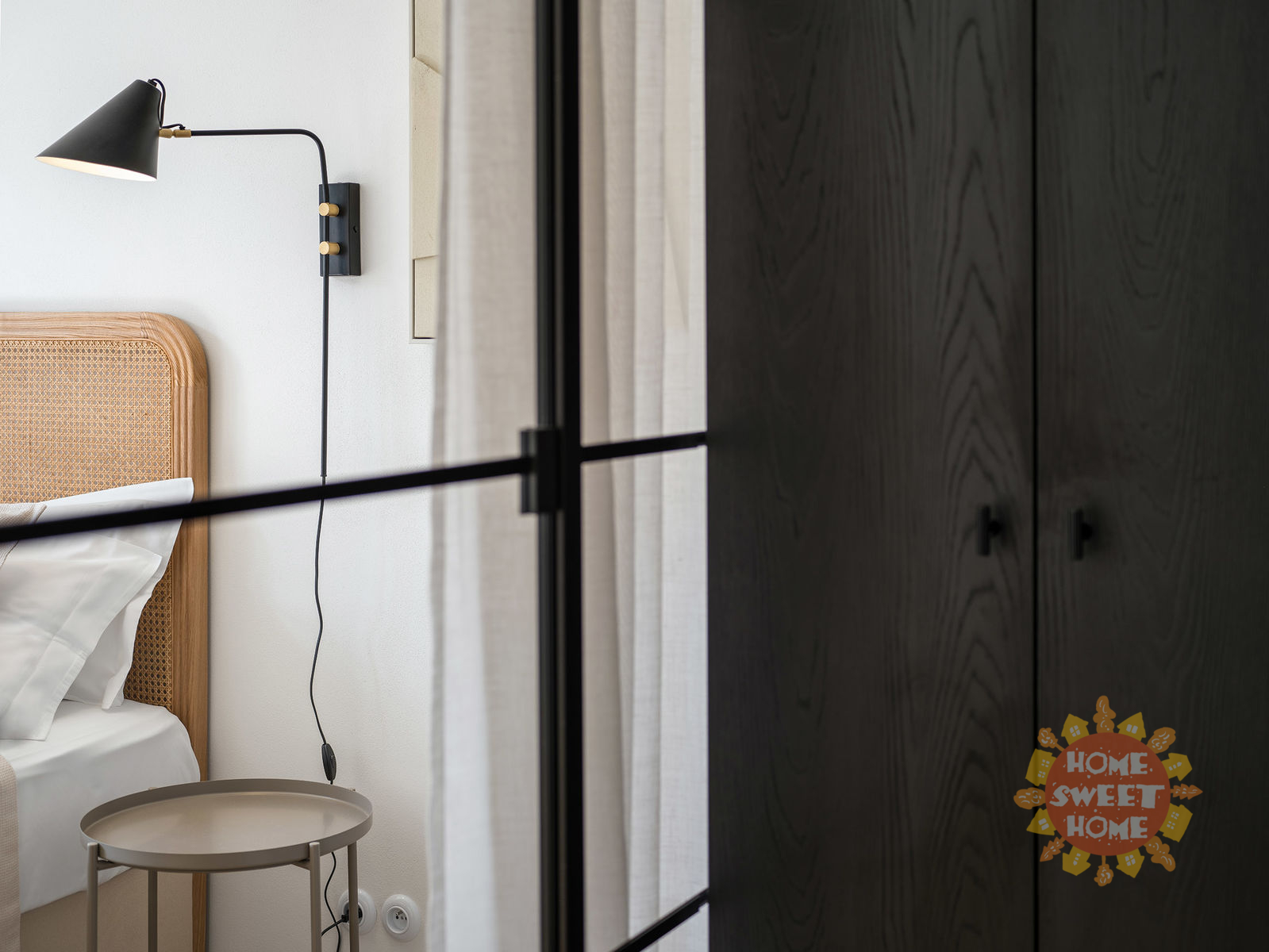 The apartment has one bedroom, a separate dressing room, a bathroom with shower and toilet and a fully equipped kitchen (kitchen with a custom-made concrete kitchen countertop including a fridge with freezer, ceramic double-oven hob, electric oven, dishwasher, coffee machine, combined washing machine and dryer). In the spacious living room you will find the original and functional tiled stove and dining area. A security system is a standard feature of this apartment. The rent includes 1 weekly cleaning and internet.