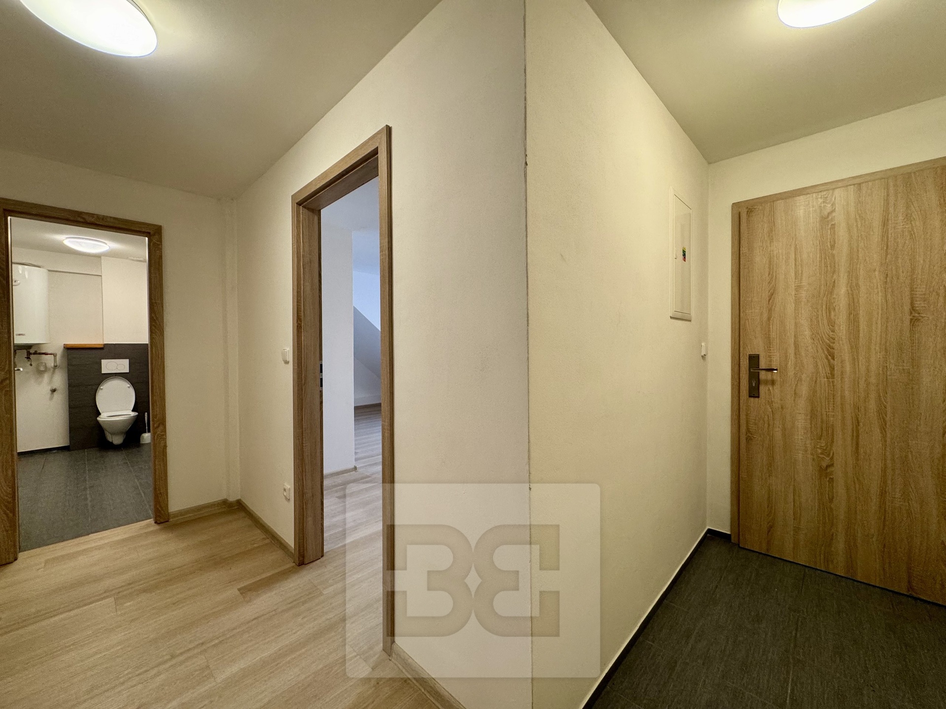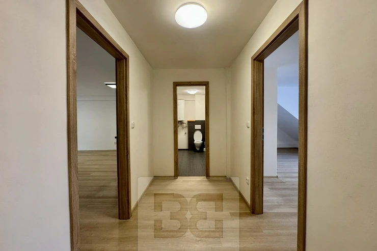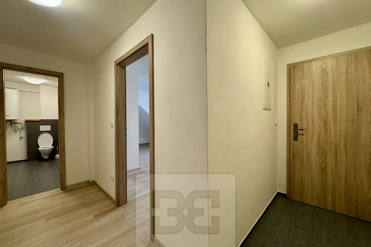 We offer for rent a beautiful and spacious 2+kk apartment in Mohelnice on Olomoucká Street. The apartment is located in a very good condition brick building on the 2nd floor. It offers a large usable area of 75 m², a partially furnished kitchen, a modern bathroom, a spacious hallway, and energy-saving lights. Water is heated by an electric boiler. The apartment is available from January 1, 2026, and the rent is CZK 14,500 + approximately CZK 3,000 in advance payments. Deposit and commission equal to one month's rent. Great location in the center of Mohelnice with all amenities nearby and a quiet street. An ideal offer for individuals or young couples looking for comfortable living in a pleasant location. Or your new start in a new home! Don't miss this opportunity!