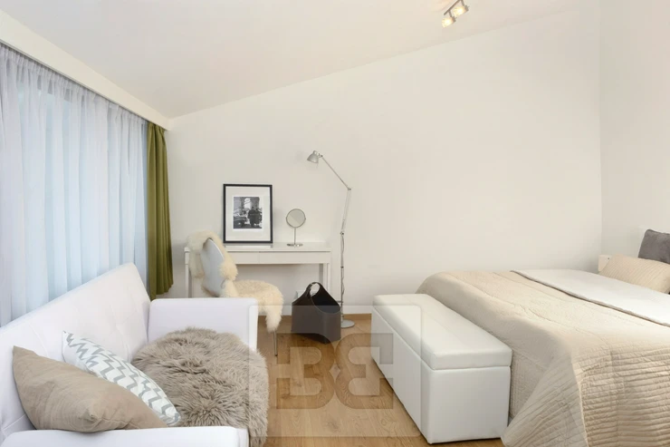 This apartment is fully furnished and offers a spacious living room with a kitchenette, a luxurious bedroom, and a bathroom. The furniture guarantees comfort and a pleasant stay. Thanks to the 2+kk layout, the space is tastefully and practically divided, ensuring maximum privacy and comfort.