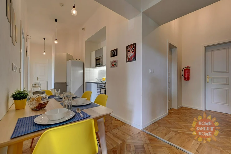 The residence is located in a very popular area close to the city center, near the Kinských Garden and Petřín Park. There is excellent civic amenities in the neighborhood — Anděl shopping center, Cinema City Nový Smíchov, schools, restaurants, bars, and much more. Public transport connections are excellent: Tram stop Újezd (200 m), Metro station Anděl (10 minutes on foot), Train station Praha–Smíchov (5 tram stops).