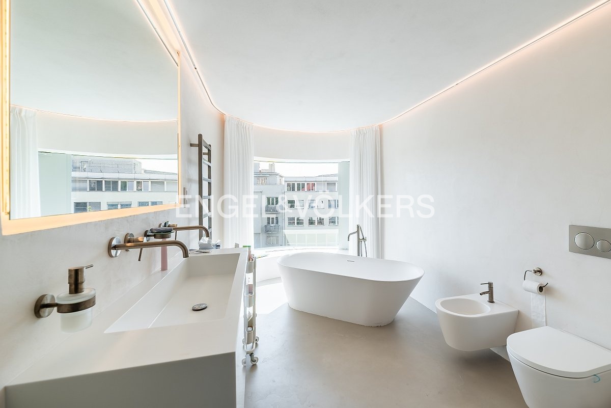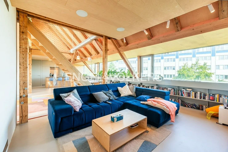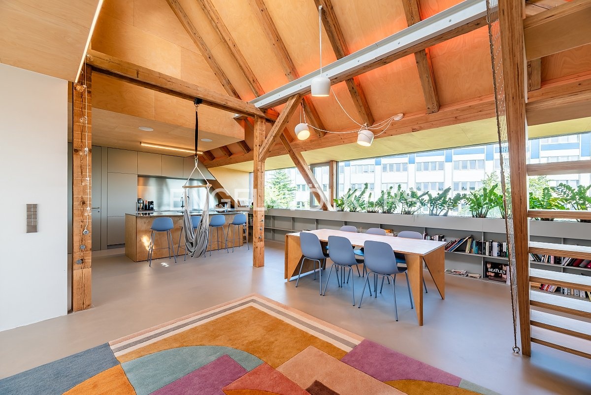 We offer for rent a unique duplex apartment with an area of 225.7 m², air-conditioned and designed under the supervision of an architect, with custom-made furniture. The comfort of living is enhanced by the Loxone smart system, which integrates the control of lights, underfloor heating, air conditioning, and blinds. The apartment has two spacious terraces (16.5 m² and 14 m²), and two parking spaces are available.