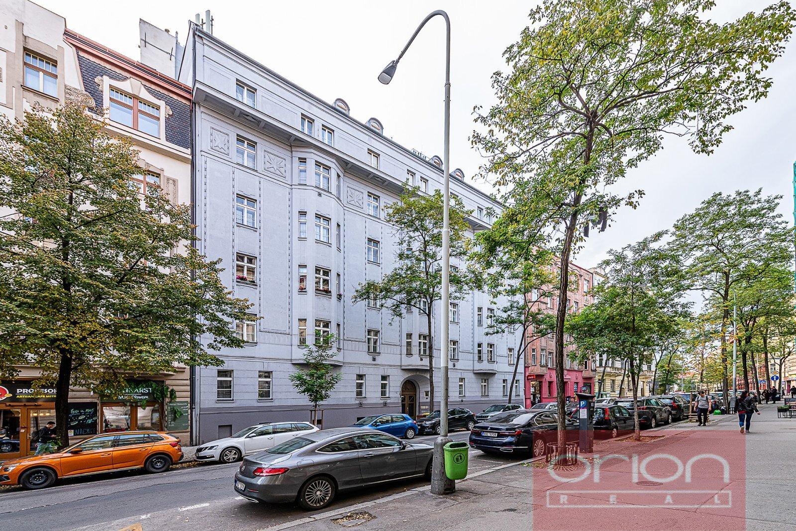 We offer for rent a bright two bedroom apartment (82 sqm) on the 6th floor of an apartment building with an elevator in a sought-after location in Prague 2 - Vinohrady, just a few minutes walk to Náměstí Jiřího z Poděbrad Square. The apartment offers a hallway with built-in wardrobes, a kitchen with a dining room and a pantry, 2 bedrooms, 2 bathrooms - one with a shower and toilet, the other with a bathtub. The apartment includes a storage room of 3 sqm. The kitchen is equipped with all appliances - a refrigerator with a freezer, a dishwasher, an electric stove with an oven, a microwave oven. The floors are vinyl with a wood pattern, the apartment includes a washing machine in the bathroom, heating is provided by its own gas boiler. All rooms are oriented to the southwest with a beautiful view of the courtyard, where a well-kept garden is available for use by the residents of the house. The apartment offers comfortable living in the Vinohrady area with all civic amenities, restaurants, cafes, bistros, local shops and excellent transport connections - metro and tram stops at Náměstí Jiřího z Poděbrad Square. Within walking distance is the popular Riegrovy sady park, Wenceslas Square, and the Flóra shopping center.