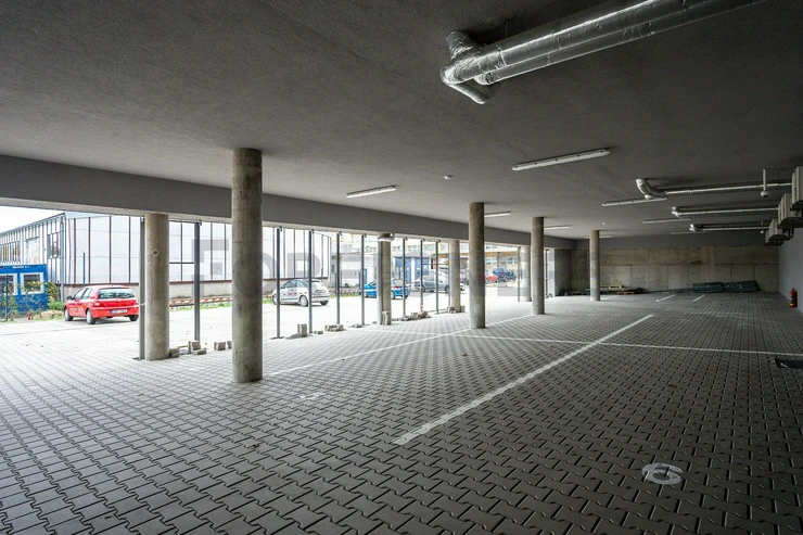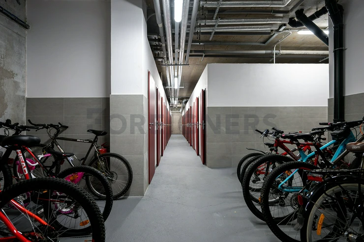 The apartment is located on the 4th floor and is easily accessible by elevator. Tenants have access to a cellar and a bike storage area on the ground floor, as well as parking spaces, both partially covered and uncovered.