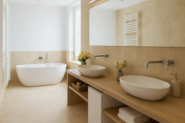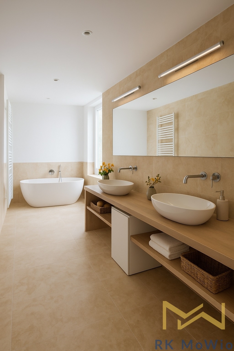 The layout of the apartment includes an entrance hall with possible direct access from the elevator, a spacious living room with dining area, a kitchen with access to the terrace, a master bedroom with a private bathroom (bathtub, shower, sink and toilet), three additional bedrooms, one with a separate bathroom (shower, sink and toilet), a study/bedroom with a bathroom (shower, sink and toilet), a laundry room, one bathroom (bathtub, sink and toilet), and a separate toilet. The apartment includes 2 garage parking spaces and a cellar compartment. The apartment is equipped with a kitchen unit (including fridge with freezer, ceramic hob, extractor hood, dishwasher and electric oven), built-in wardrobes, a washer and dryer, preparation for high-speed internet, wooden floors and tiles.