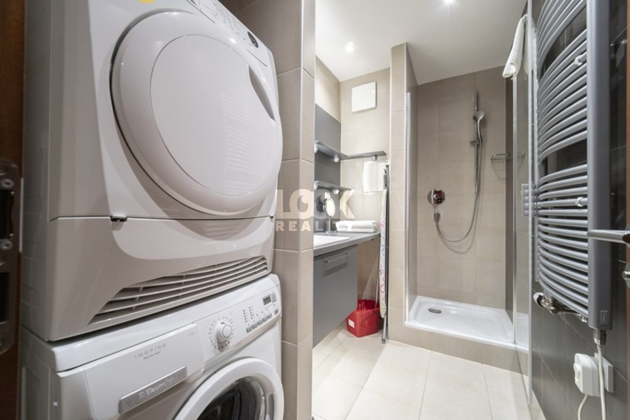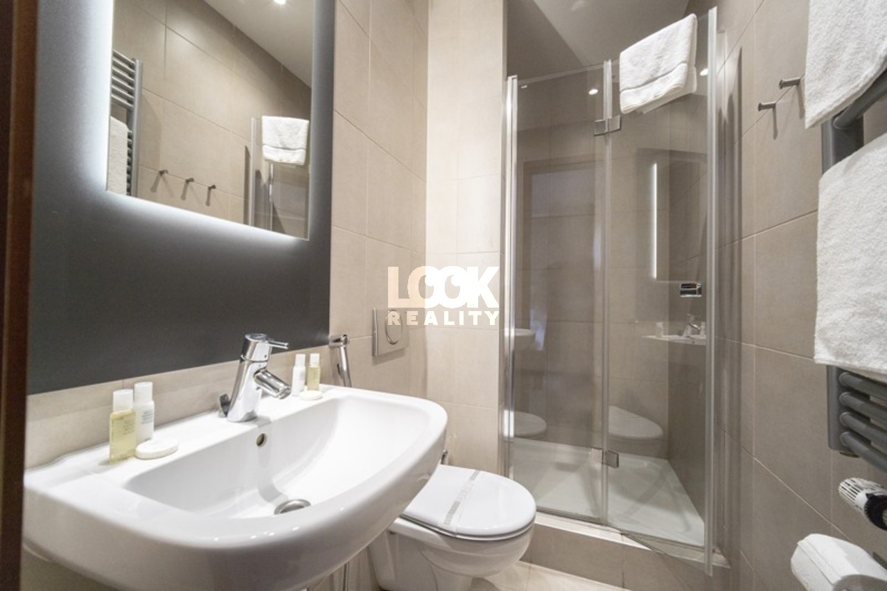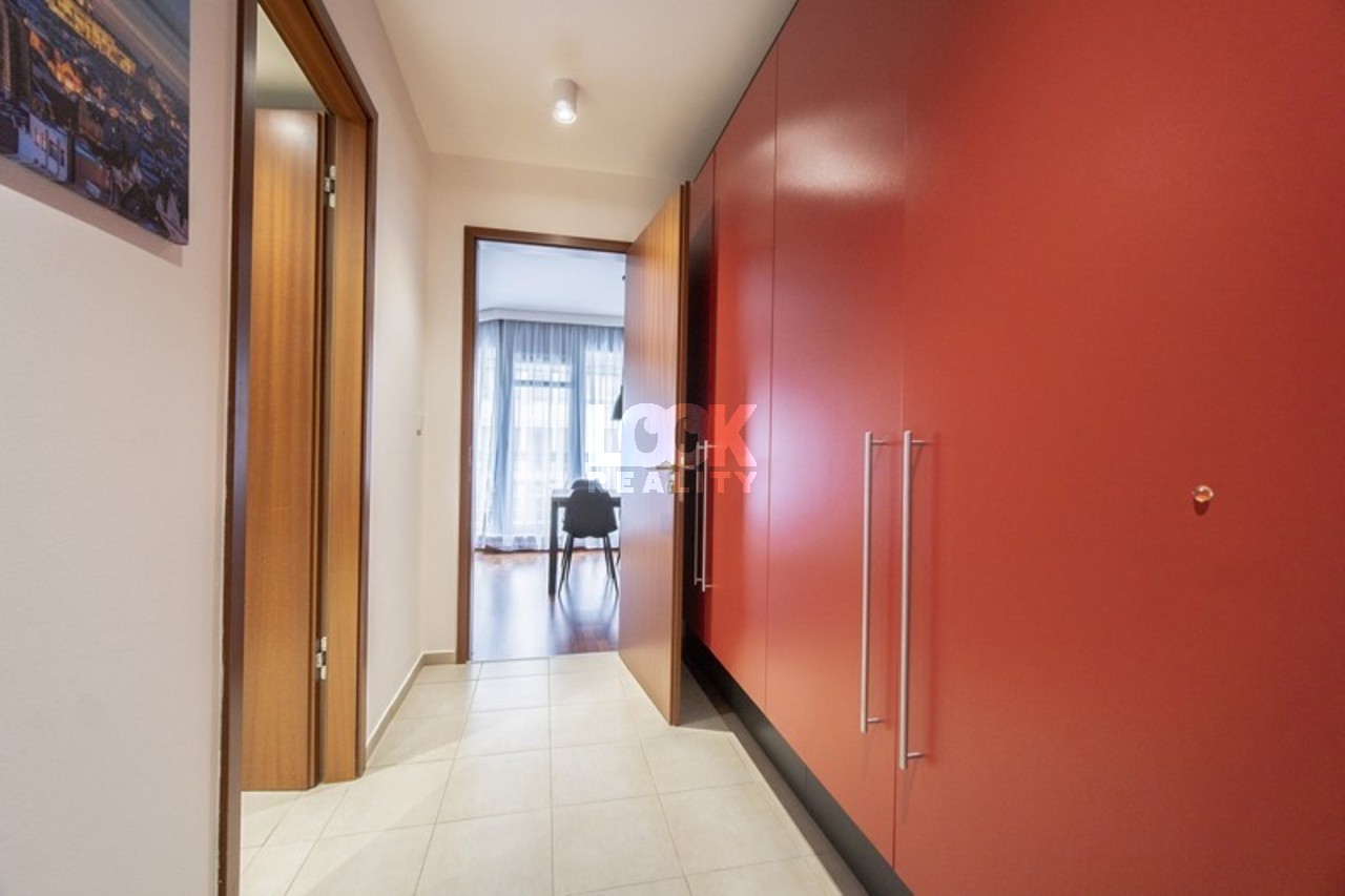 Luxury apartment in a quiet part of Prague, close to the city center. We offer for rent a luxurious 2+kk apartment with an area of 54.9 m2, located on the 3rd floor of a new building with an elevator on Horská Street. The apartment is rented fully furnished and consists of a spacious living room with a modern and fully equipped kitchenette (stovetop, electric oven, dishwasher, microwave), a beautiful bedroom with a double bed and plenty of storage space. The apartment also has a bathroom with a shower, toilet, and hallway with large built-in wardrobes. There is a reception desk in the building. It is possible to rent a garage with the apartment. The apartment is located in a beautiful area, in Albertov, not far from the city center. The Botanical Garden and many historical monuments and places of interest are within walking distance. Vyšehrad is ideal for walking or running with beautiful views of Prague. The popular Náplavka is a few minutes' walk away - a perfect place to relax, visit markets, or sit by the river. There are many shops, cafes, and restaurants in the area. Excellent transport accessibility. The Albertov tram stop (trams 14, 18, and 24) is only a 3-minute walk away. You can reach metro B (Karlovo namesti) in two tram stops. Luxury living in an attractive location, highly recommended. The rental period is 6 months or more. It is also possible to rent for a shorter period, for a minimum of 3 months, but the rental price will be different. Please contact the broker to verify the price. Illustrative photo. There are currently several units of the same standard available. The floor plan corresponds to the layout of the apartment. Available from October 16, 2025.