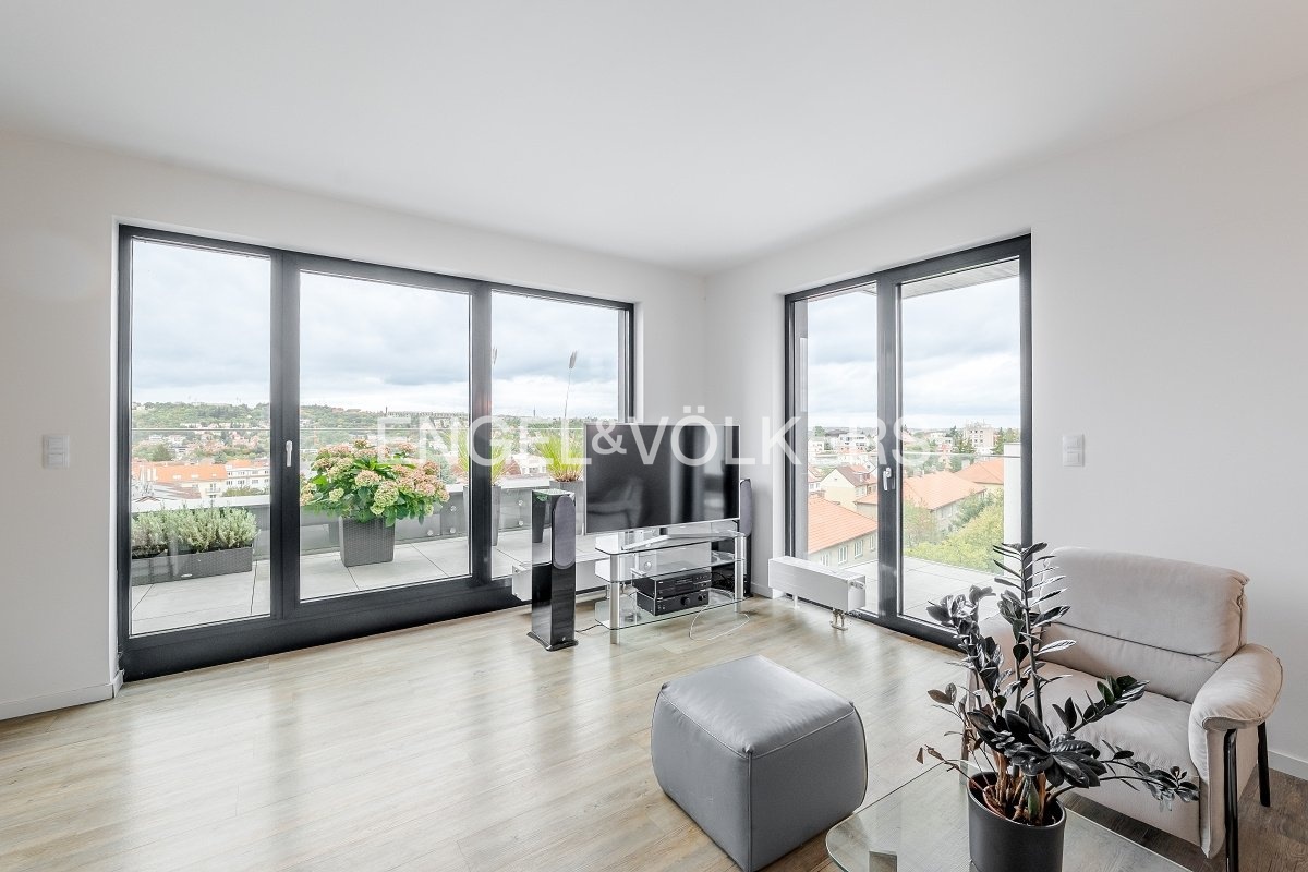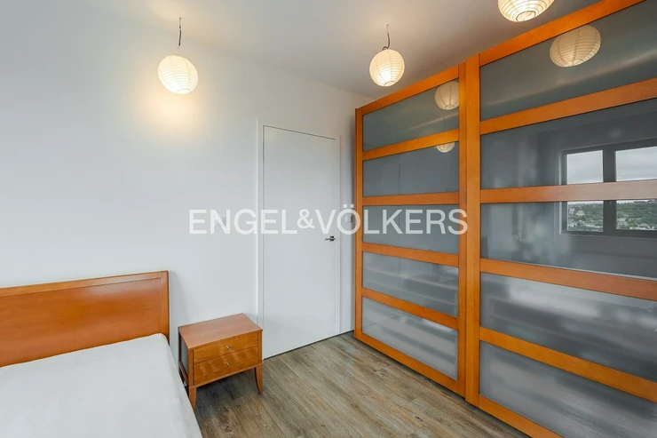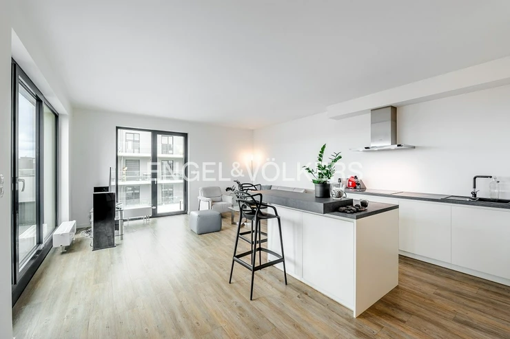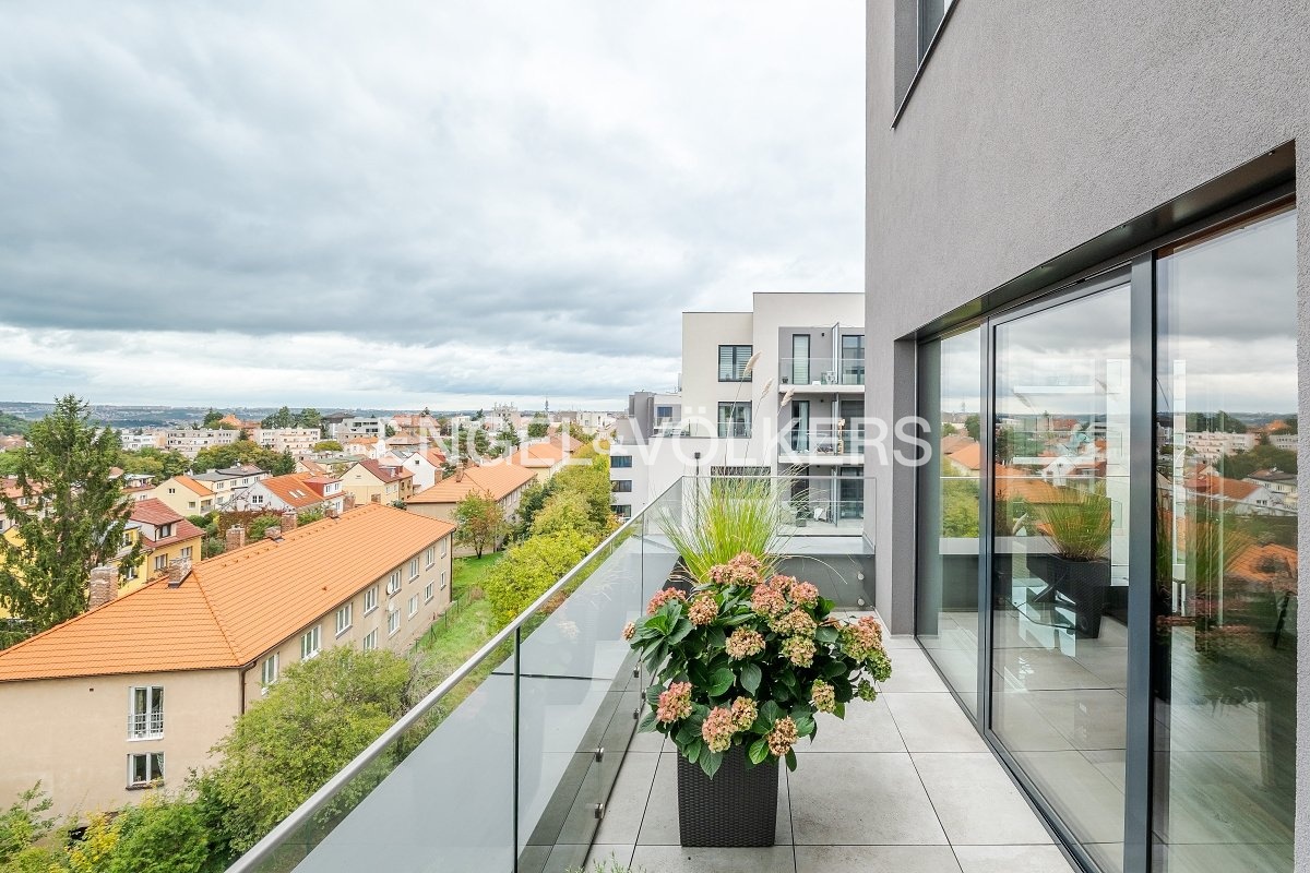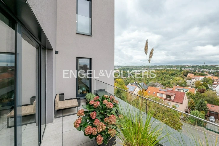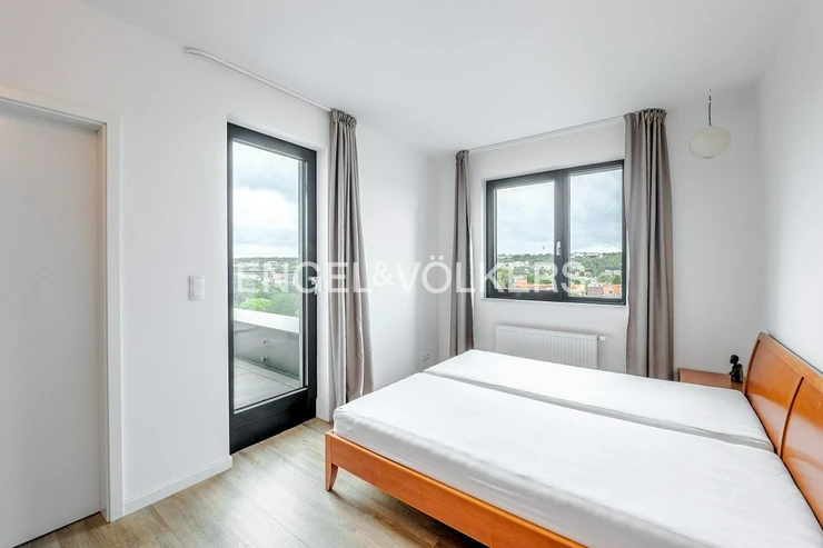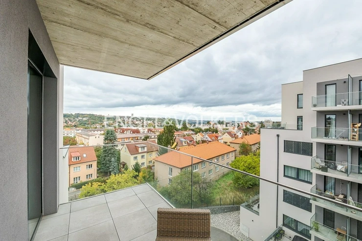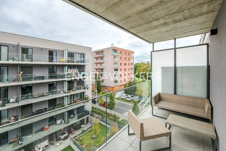 We offer for rent a modern, bright, and spacious apartment in a new building, located on the 3rd floor. The apartment is fully equipped with high-quality furniture and appliances, ready for immediate occupancy. A great benefit are three spacious terraces with beautiful views of Prague. Thanks to the large windows, the interior is beautifully lit and feels very airy. The layout of the apartment is practical and offers plenty of storage space.