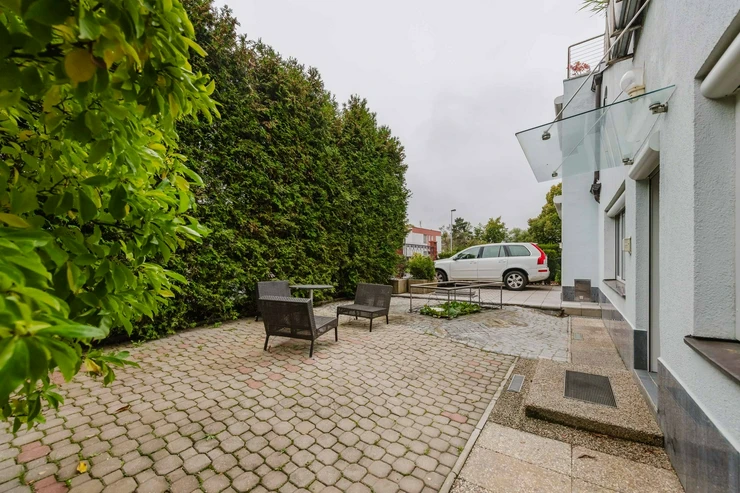 In the summer months, you will appreciate the possibility of using the 40 m² paved front garden, which is an ideal place to relax in the fresh air. Parking is also available directly in front of the building, ensuring convenient access. The property has two floors, with the offered premises located on the first floor and therefore easily accessible. These spaces can also be used as office space. For more information or to arrange a viewing, please contact the broker.