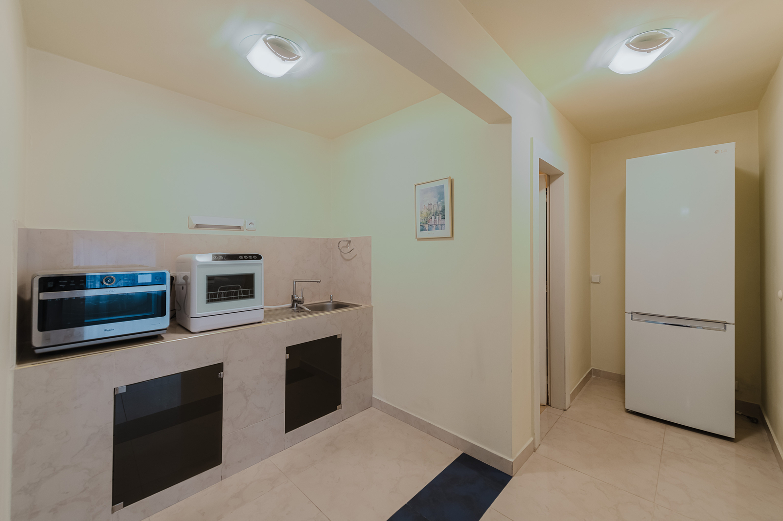 We offer for rent an unfurnished 2+kk apartment with an area of 56 m² on the ground floor of a family house with a beautiful front garden on Hajní Street, Kyje. This pleasant apartment consists of an entrance hall, two living rooms with an area of 9 m² and 35 m², a kitchen equipped with a refrigerator and a double stove, a bathroom with a shower, a separate toilet. The premises are currently available unfurnished, but it is possible to furnish them according to the needs of the future tenant.
