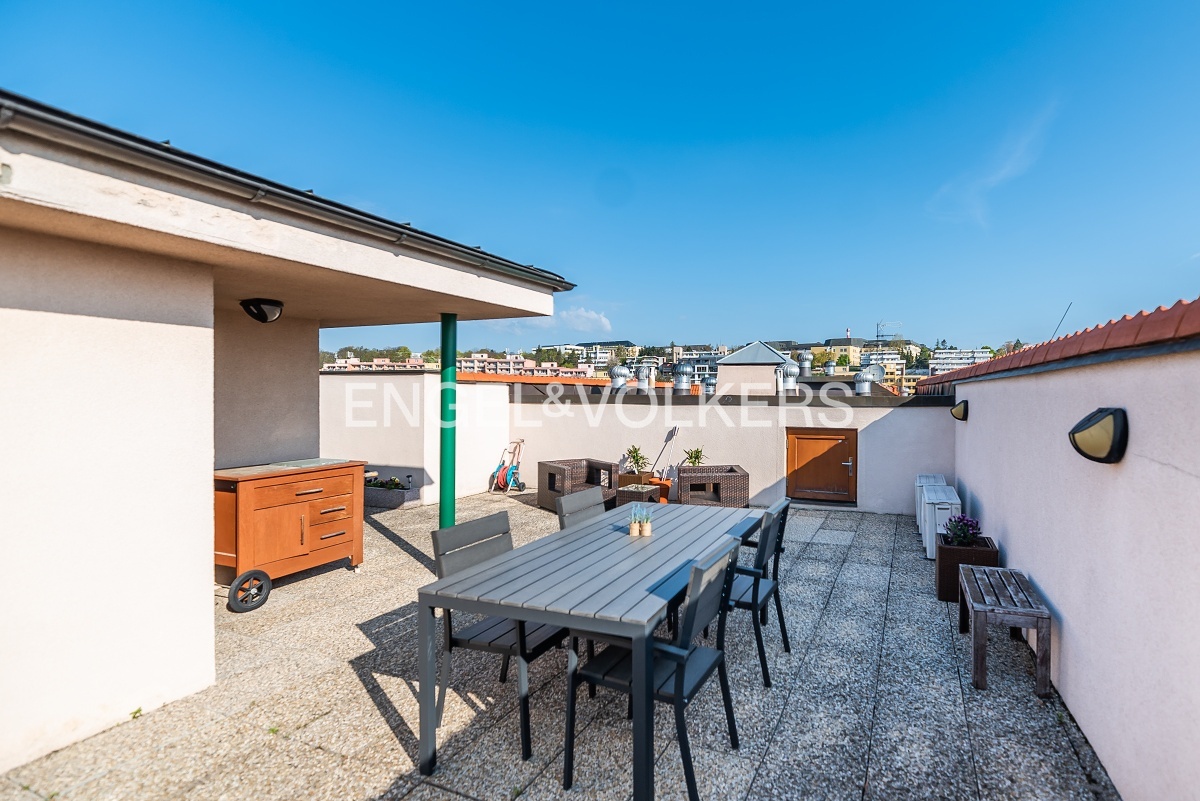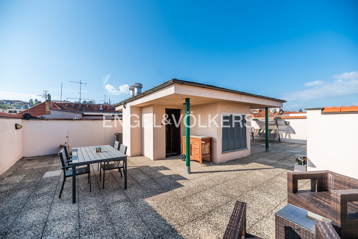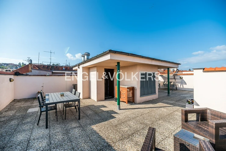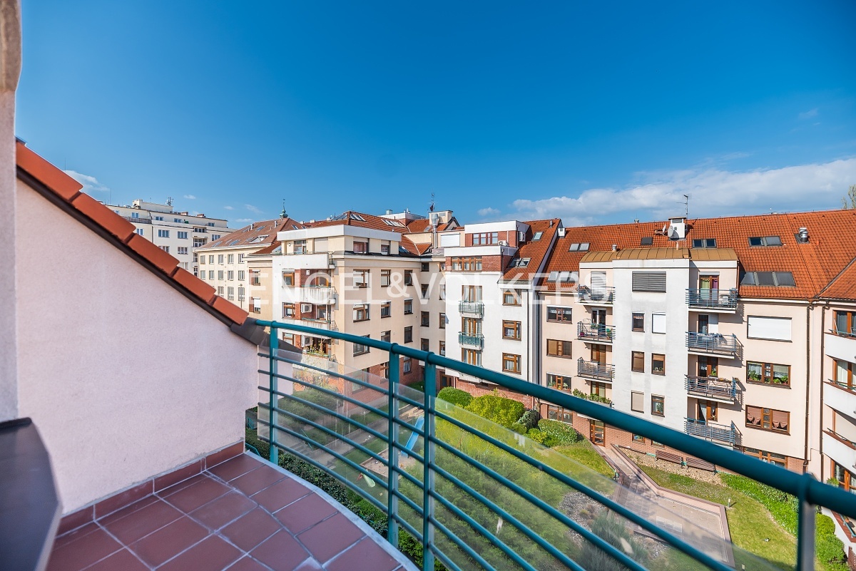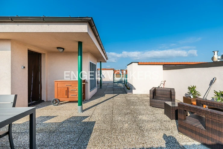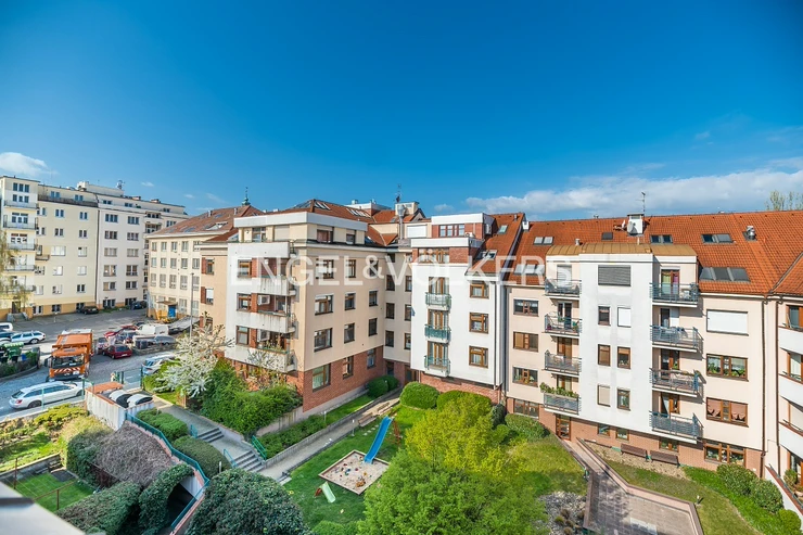 Modern apartment situated on the 5th floor of a new building in a quiet part of Břevnov. On the 6th floor, there is a spacious roof terrace overlooking Břevnov. The apartment is located in a quiet street and is oriented to a quiet courtyard.