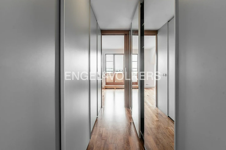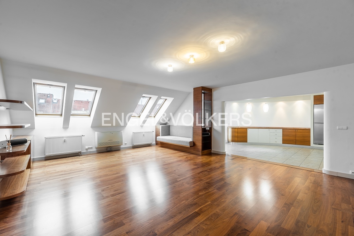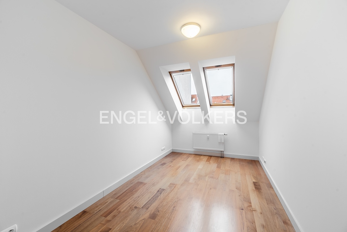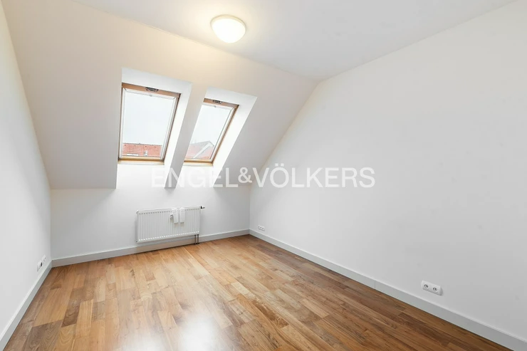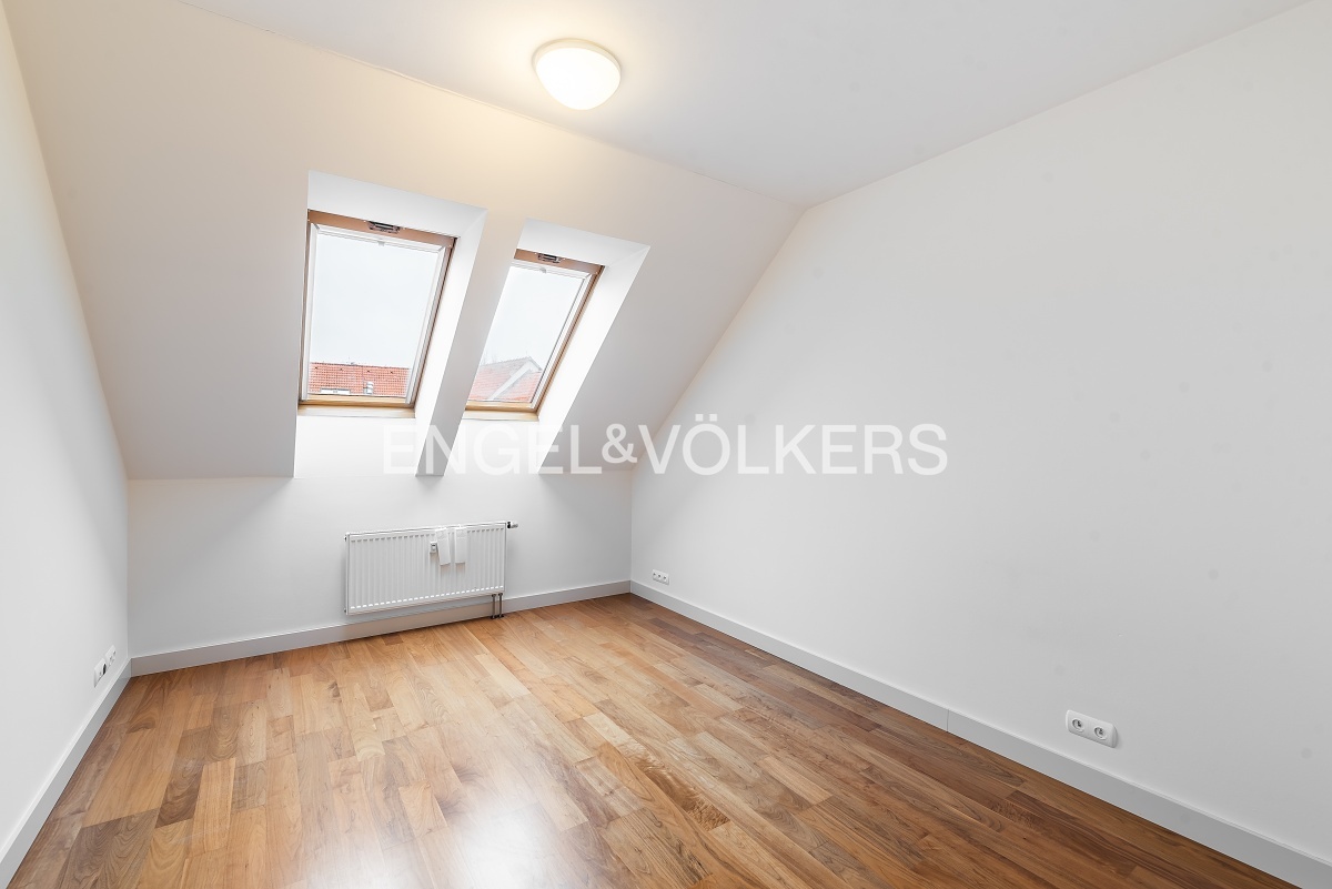 Modern apartment situated on the 5th floor of a new building in a quiet part of Břevnov. On the 6th floor, there is a spacious roof terrace overlooking Břevnov. The apartment is located in a quiet street and is oriented to a quiet courtyard.