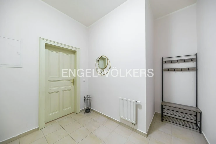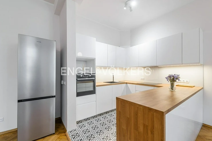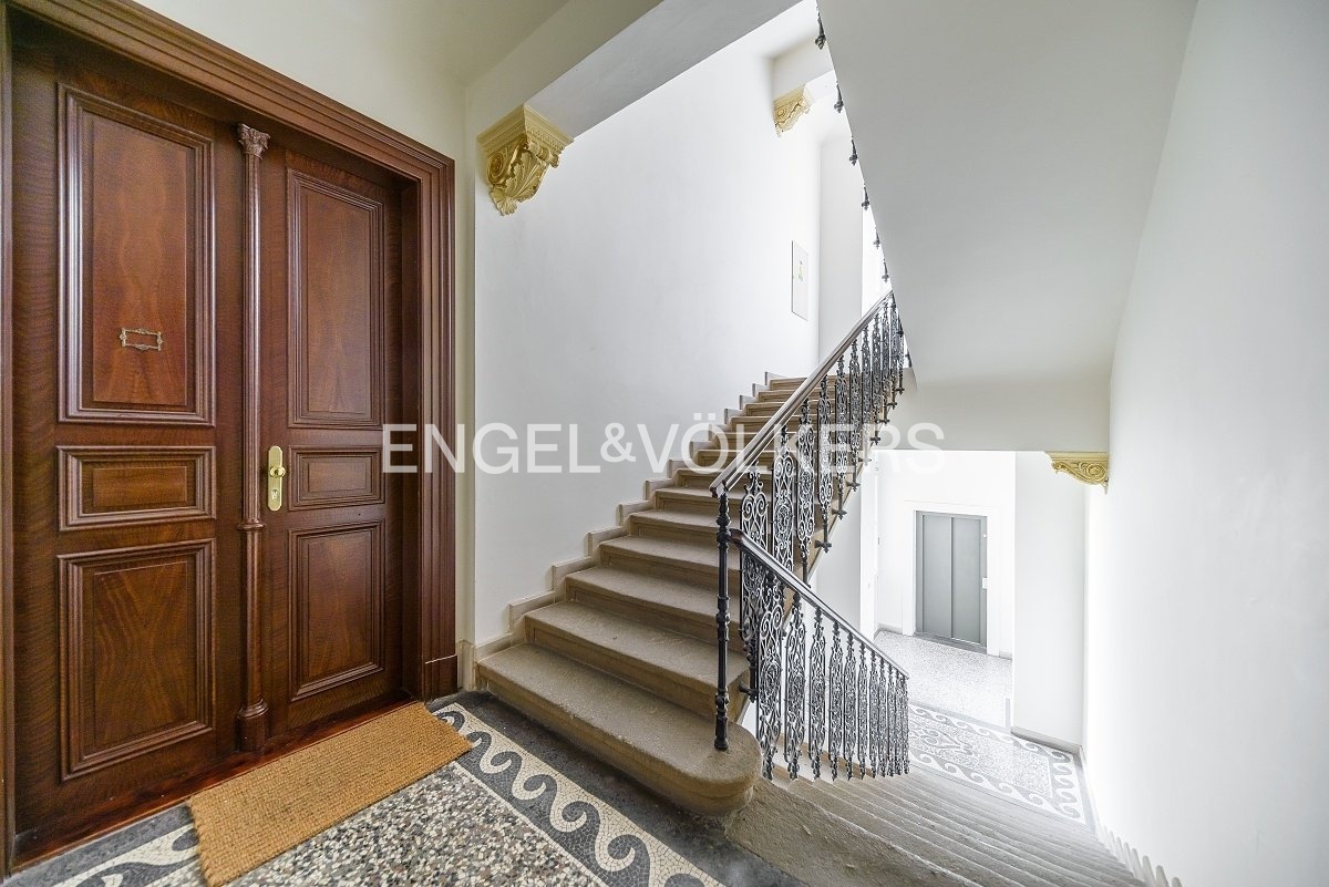 The apartment is in a beautiful historic building with a newly renovated facade and elevator. The common areas of the house are meticulously maintained, freshly painted and decorated with original historical elements, which gives the space a unique character.