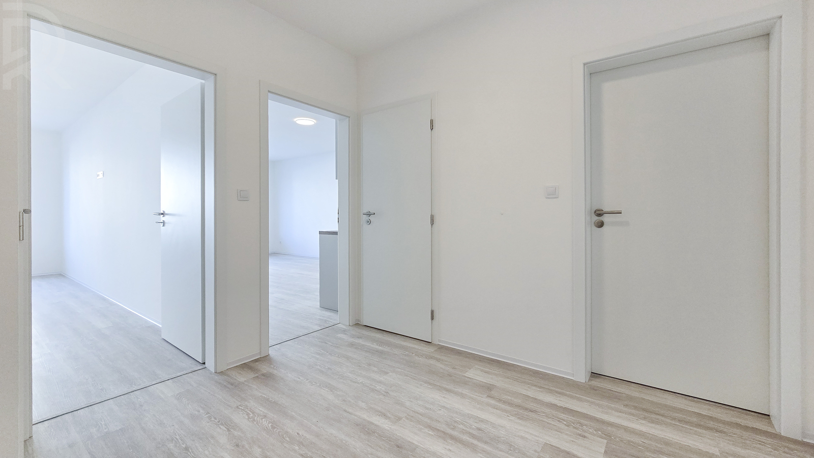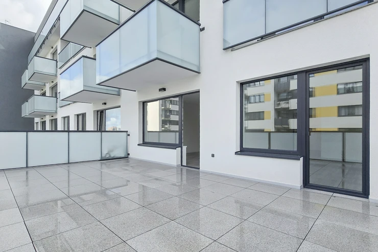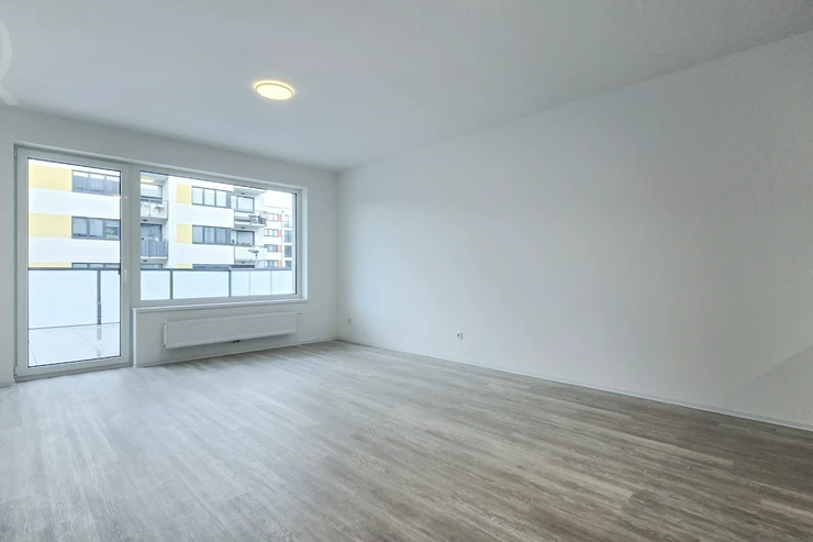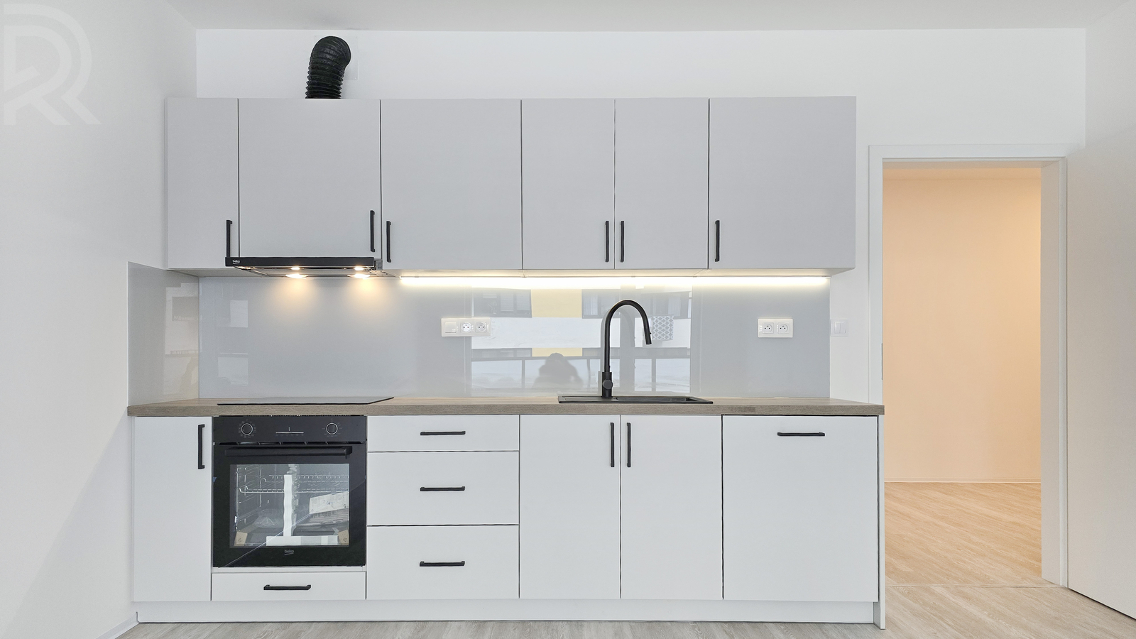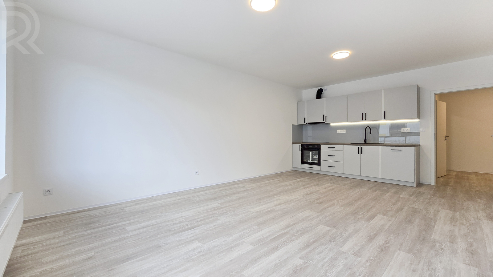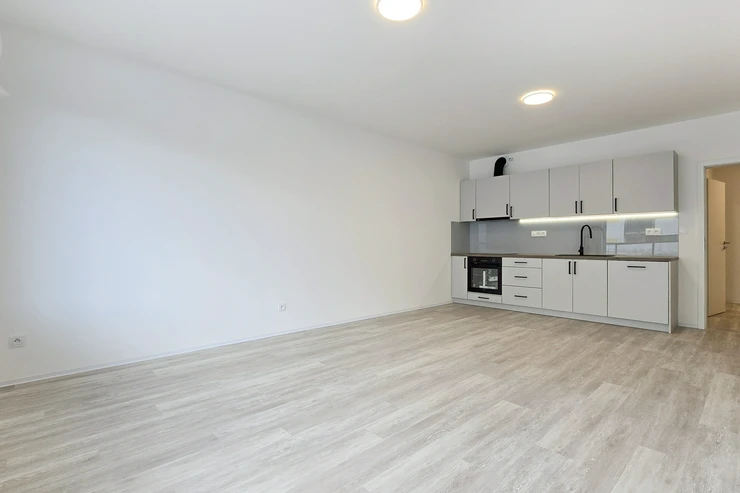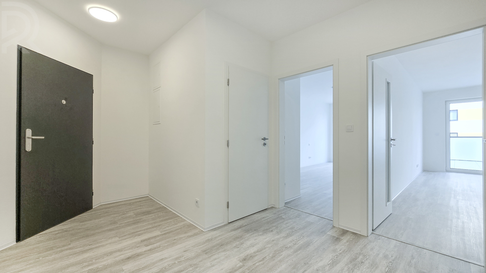 Layout: 2+kk, completely new apartment, living room with a kitchen unit and built-in appliances, bathroom with a beautiful shower and space for a washing machine/dryer. There is enough space for additional bathroom furniture. A separate toilet with a sink, a storage room, and a non-passing bedroom also has access to the terrace.