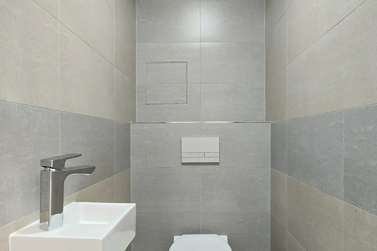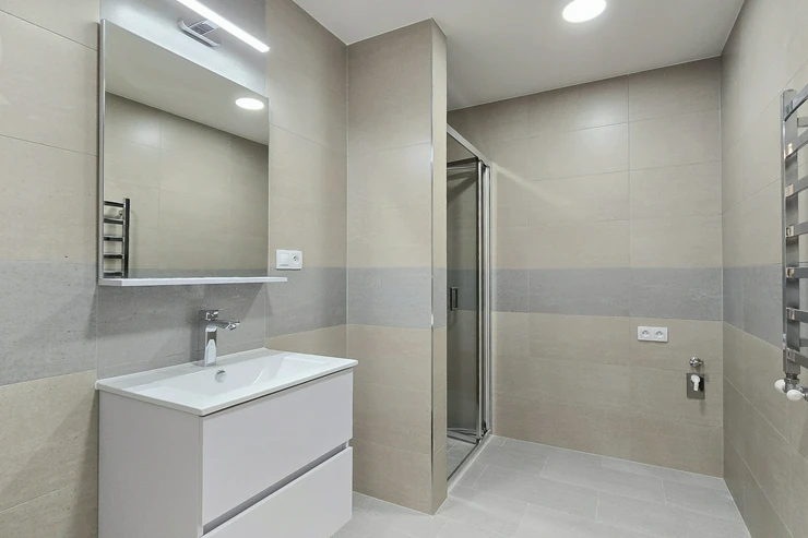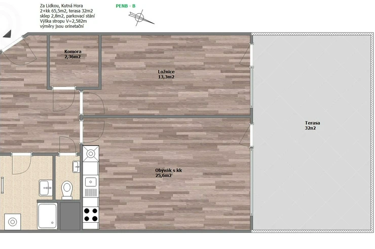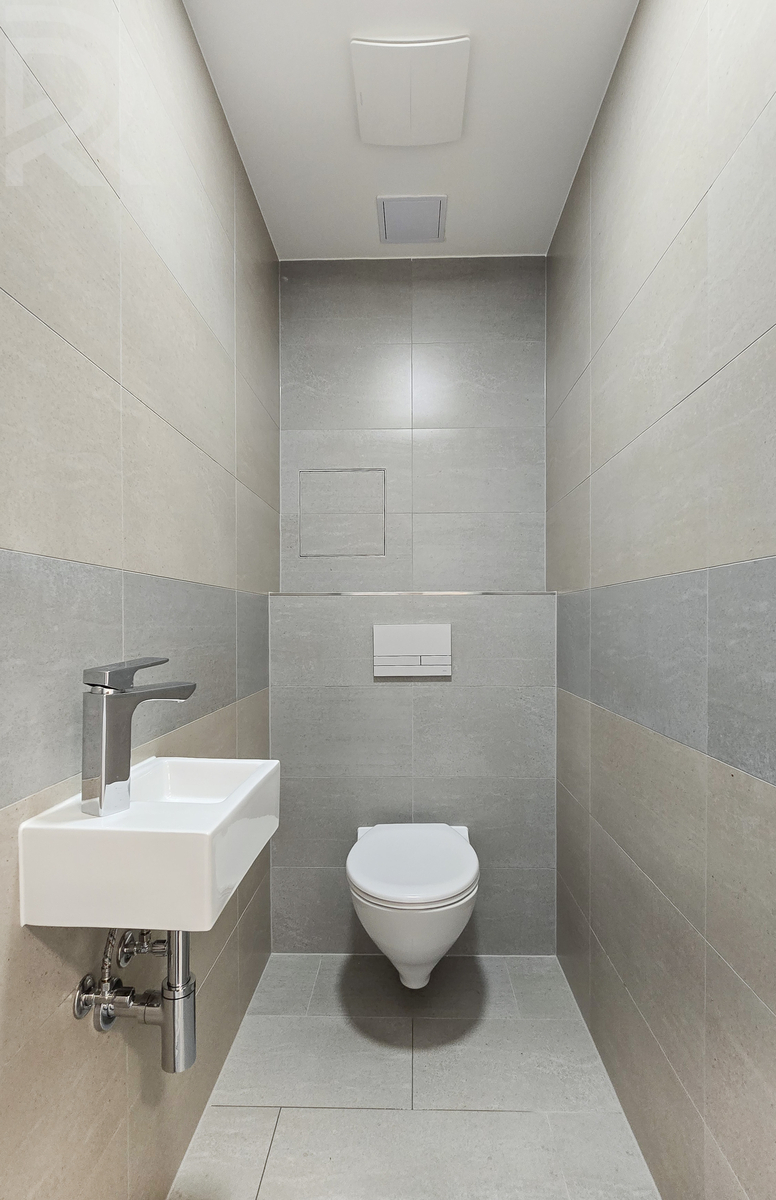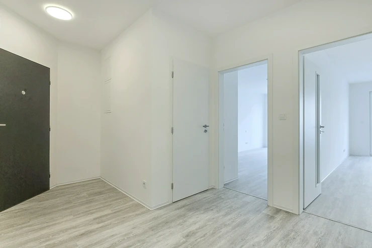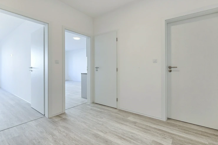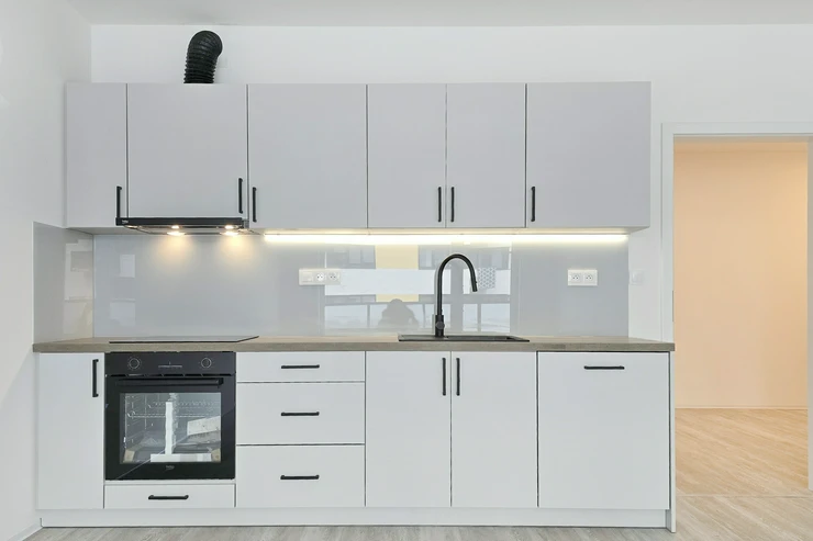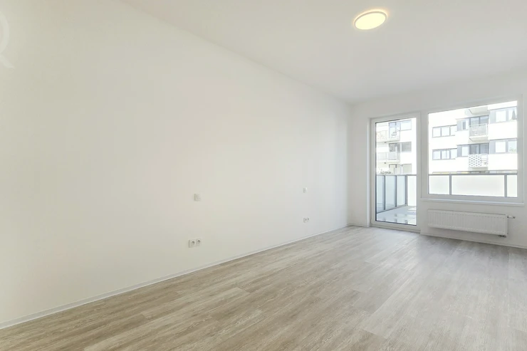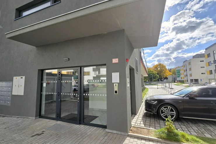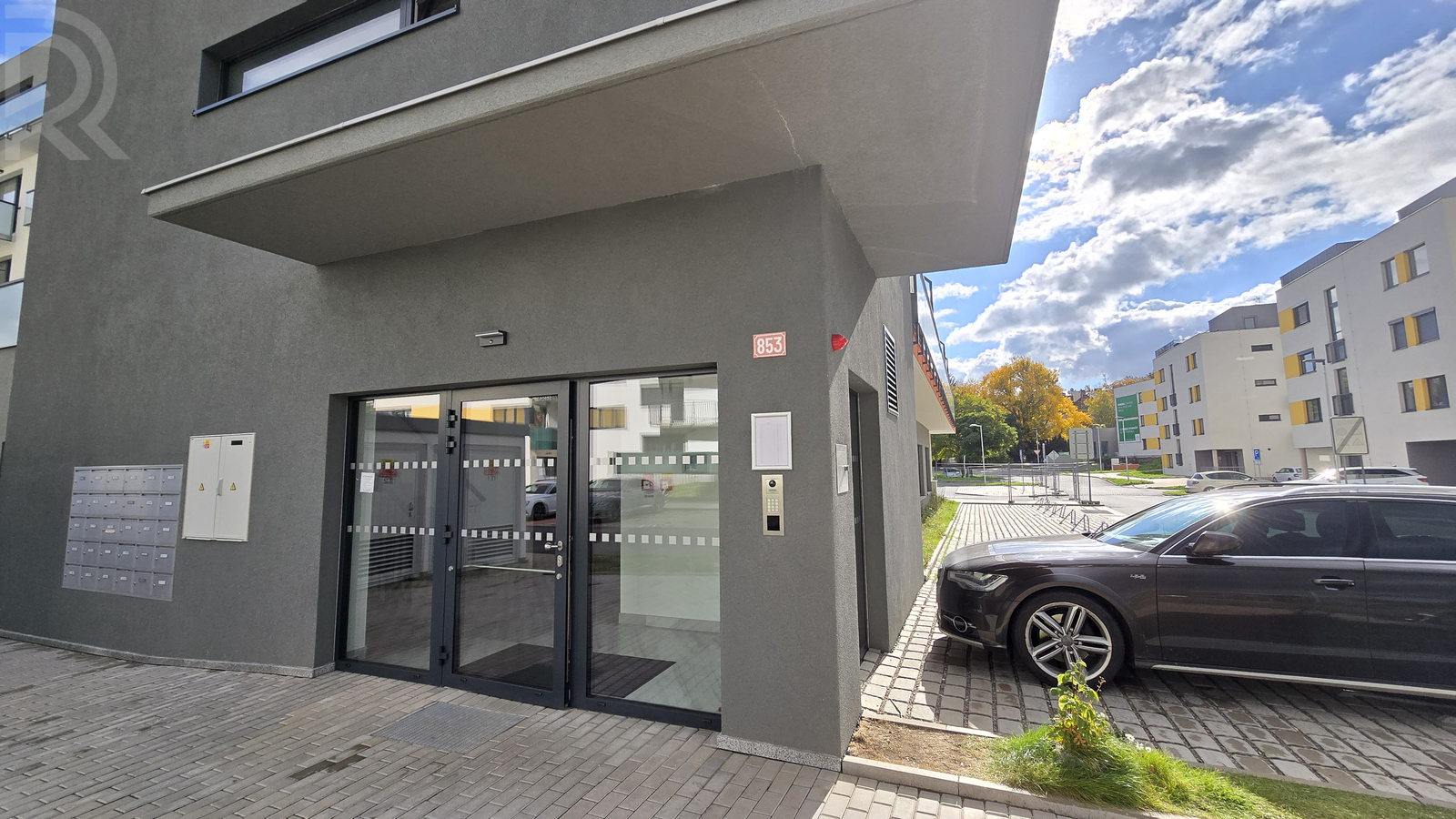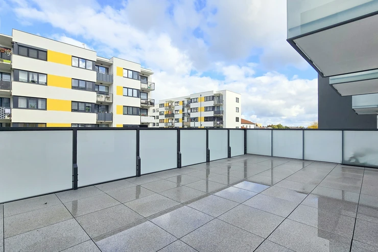 Layout: 2+kk, completely new apartment, living room with a kitchen unit and built-in appliances, bathroom with a beautiful shower and space for a washing machine/dryer. There is enough space for additional bathroom furniture. A separate toilet with a sink, a storage room, and a non-passing bedroom also has access to the terrace.