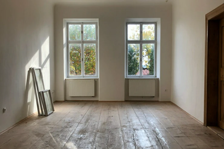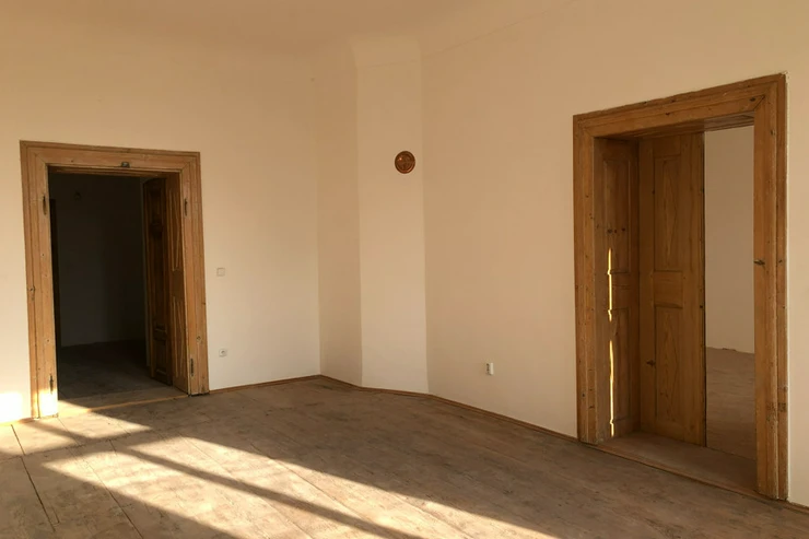 Byt si zachoval autentické historické prvky, včetně masivních dřevěných podlah, původních dveří a dřevěných zárubní. Impozantní jsou podlahy z původních dubových prken louhovaných v mořské vodě.