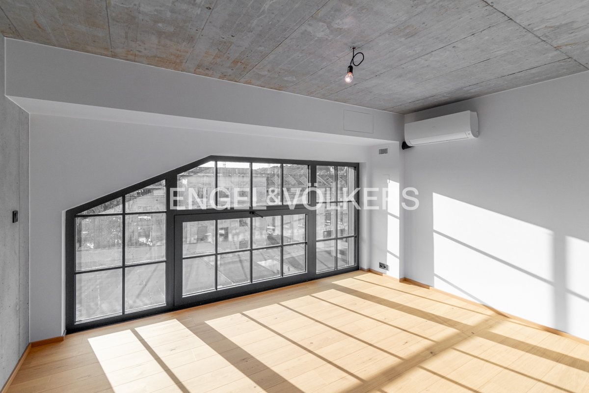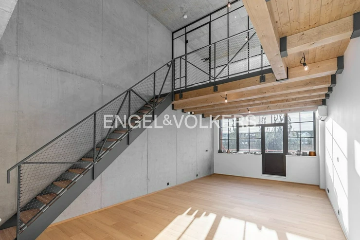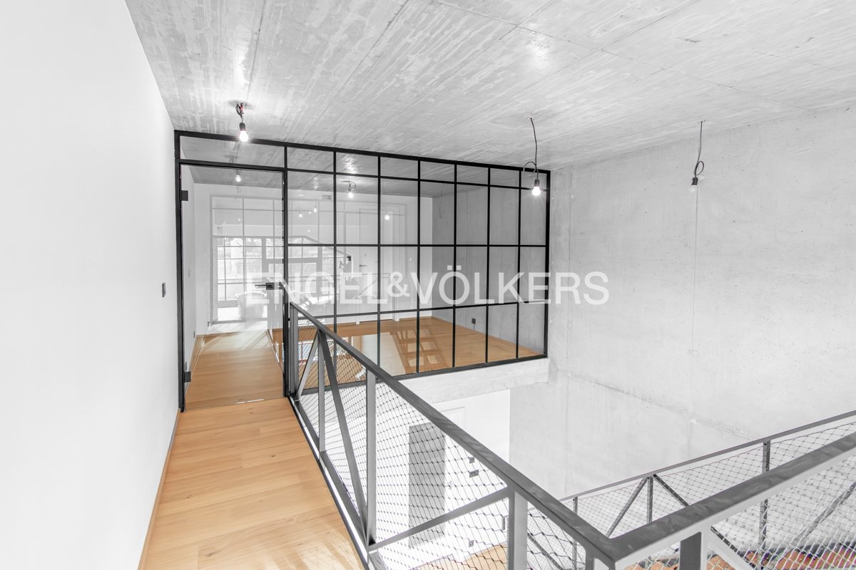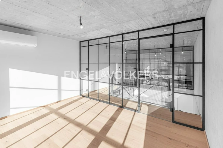 Wooden floors, large-format windows, exposed concrete ceilings – industrial character with modern aesthetics