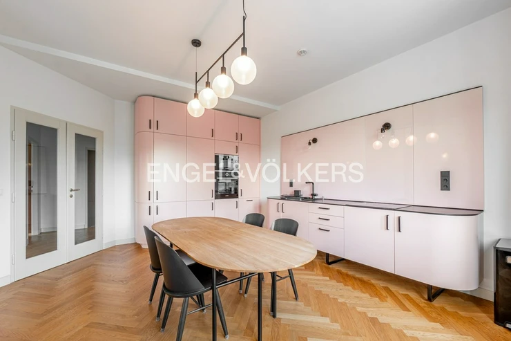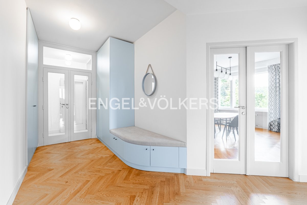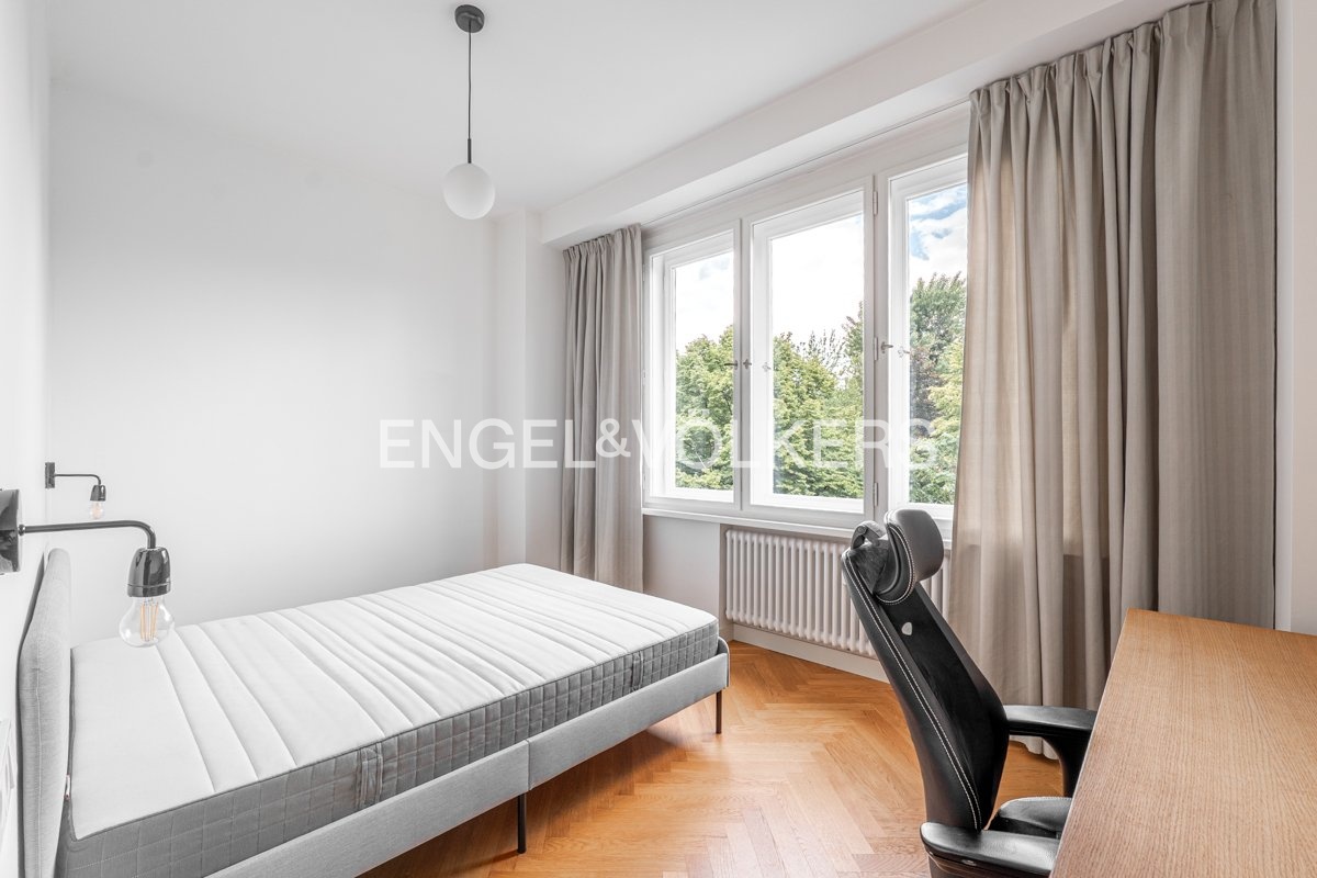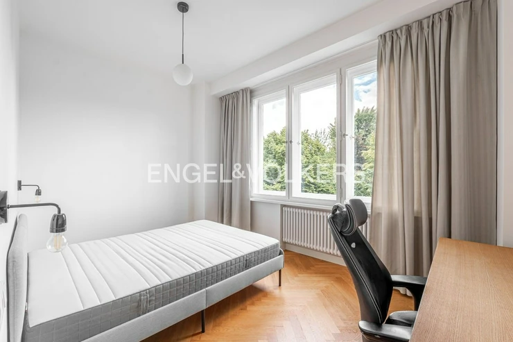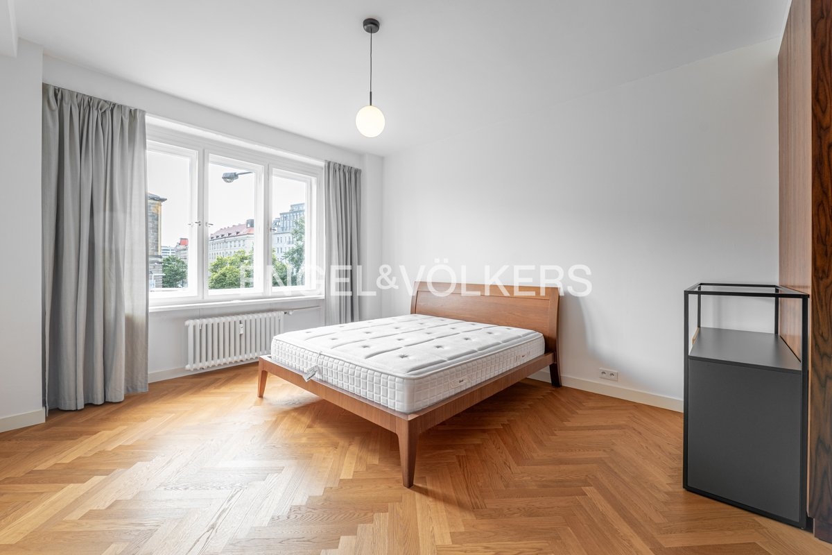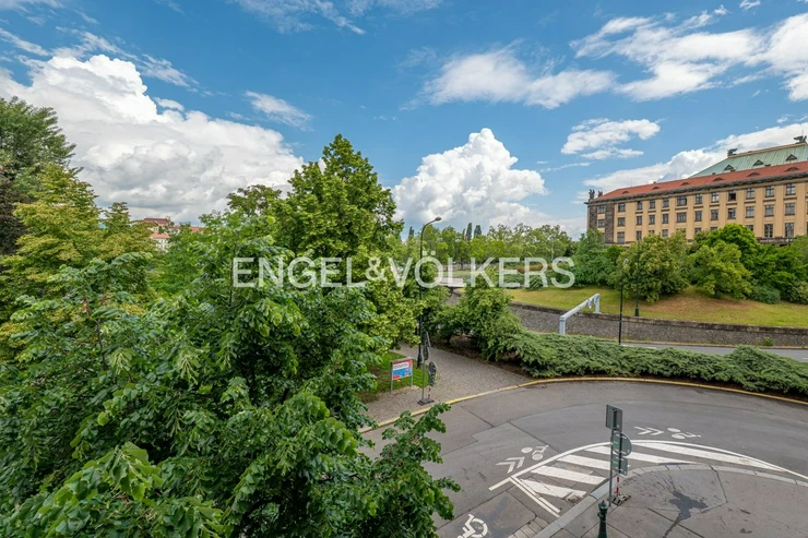We offer for rent a superior renovated and fully furnished apartment on the second floor of a meticulously maintained building with elevator, in the heart of the city. The property is located in a quiet part of the center of Prague, right next to the Vltava riverbank, opposite Lannova Park. The layout of the apartment includes a bright living room, a separate kitchen with a dining room equipped with modern appliances, a master bedroom with its own bathroom (shower, toilet) and built-in wardrobes, a second room, another bathroom (bath, shower, toilet), a spacious hall with plenty of storage space and an entrance hall.
