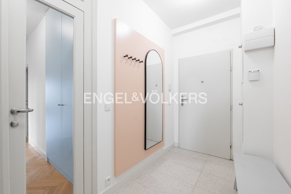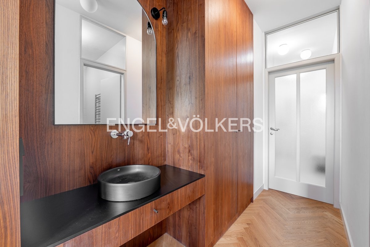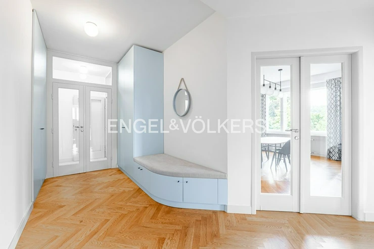 The apartment is equipped with central heating, entrance door with safety features, security system and there is also a practical cellar space. The attractive location offers not only impressive views of Letenské sady, the Brussels Pavilion and the Vltava River, but also excellent transport accessibility. The Florenc and Náměstí Republiky metro stations are conveniently accessible on foot, the Hilton hotel is in close proximity and there is a direct access to the D1 motorway.