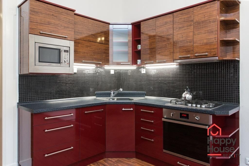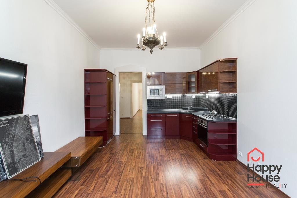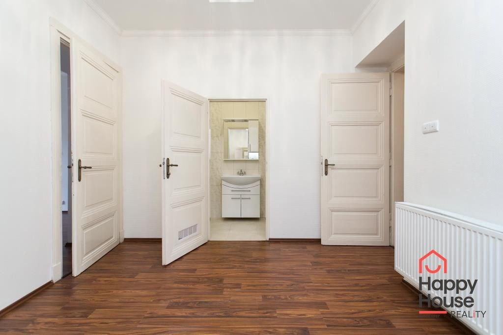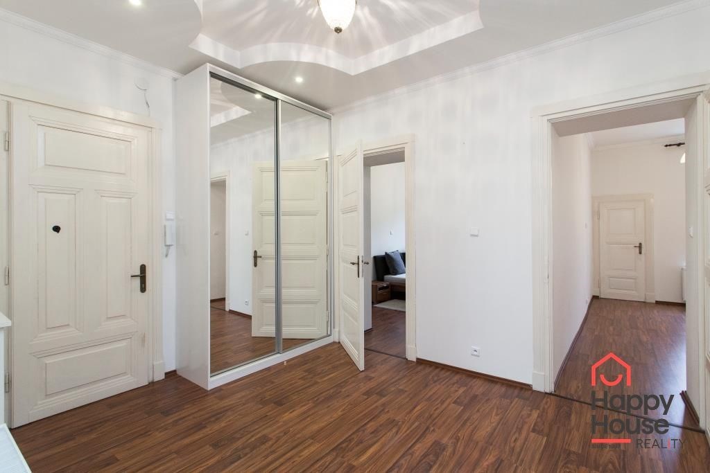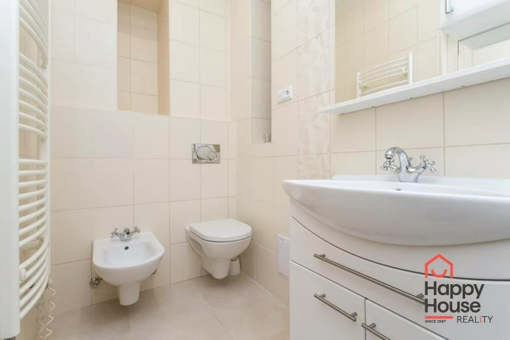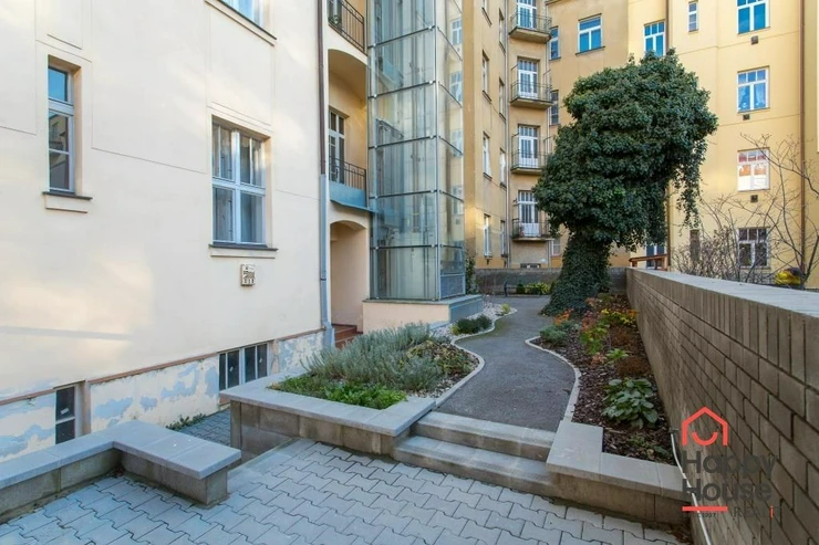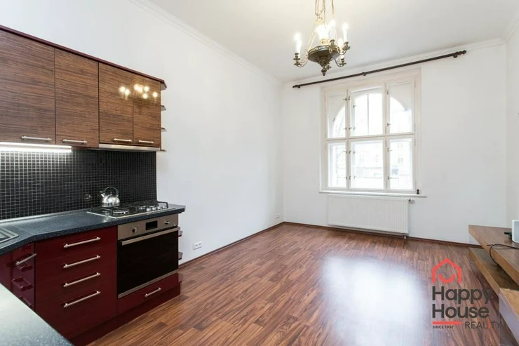 We offer for long-term rent a partially furnished apartment two-bedroom with an area of 73 sqm located on the raised ground floor of a brick building in the popular location of Prague 6 - Bubeneč. The apartment's interior includes an east-facing living room overlooking the street, a furnished bedroom facing west towards a quiet, renovated courtyard, and a children's room or study with a small storage room. The kitchenette is equipped with built-in appliances – a gas hob, electric and microwave oven, dishwasher, fridge freezer, and extractor hood. The living room is furnished, among other things, with a fold-out sofa (Ikea brand) and a television. The bathroom features a shower, toilet, bidet, heating ladder, and a washing machine. There is a tall cabinet providing ample storage space in the spacious hall. The apartment has its own gas boiler. Laminate floating floors and tiling. Vodafone is available in the building. The apartment comes with a cellar storage space (2 sqm). Street parking - zones.