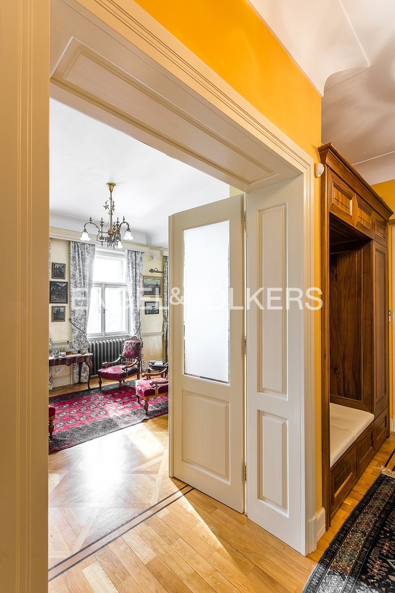 Fully furnished with period furniture, with an emphasis on quality workmanship and the smallest details. The apartment is located on the 2nd floor of a carefully renovated historic building without an elevator.