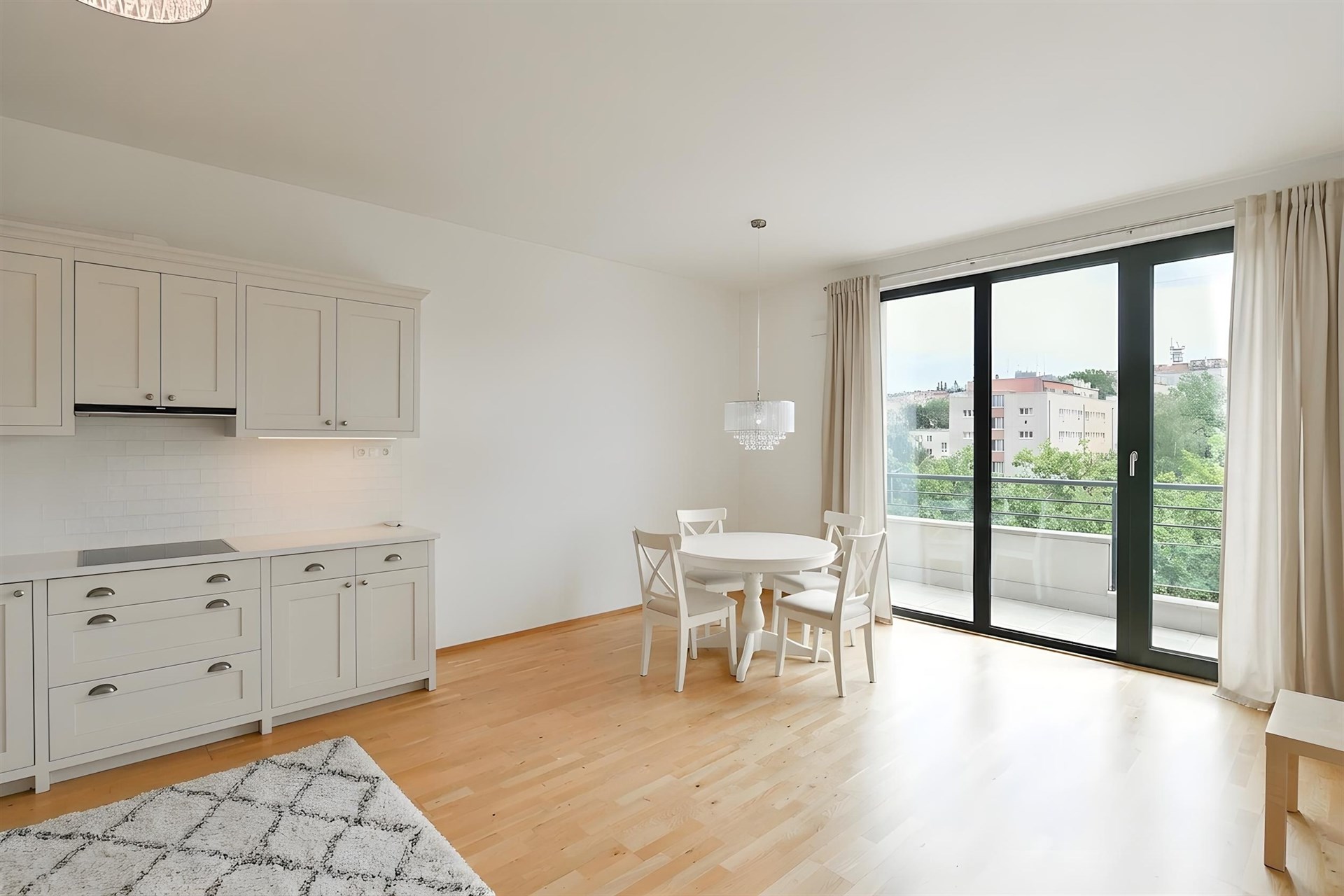 We offer a bright, air-conditioned 3+kk apartment with an area of 80 m² and a 12 m² terrace, located on the top floor of a new building in the Kajetánka residential project in Prague 6 – Břevnov. The apartment faces south, is fully accessible (including access from the garage) and tenants can use a fenced garden designated only for residents of the building. The apartment comes with a cellar and a parking space in the garage is available for rent. The apartment is available immediately.