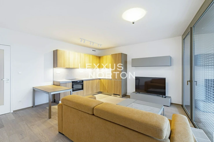 A studio apartment with a floor area of 37.6 sqm and a terrace is available for rent, located on the 3rd floor of a new residential project in Smichov City with an elevator. The apartment is located in an attractive part of Prague 5 - Smichov, which offers complete civic amenities and excellent transport links to the city center.The interior consists of an entrance hall, a living room with a kitchenette and direct access to the terrace, and a bathroom. The apartment has a cellar.The apartment is fully furnished with built-in Sykora kitchen appliances, built-in wardrobes, a washing machine and dryer, window blinds, and heat recovery ventilation. The bathroom has a shower cubicle and toilet. The vibrant part of Prague's Smichov district along the Vltava River, consisting mainly of First Republic apartment buildings. The location has excellent public transport links (buses, trams, Andel metro station) and road connections. The highway is 11 minutes away by car, and Vaclav Havel Airport is 20 minutes away. All civic amenities are located in the vicinity – the Novy Smichov shopping center, supermarkets, local shops, restaurants, cafes, bars, pharmacies, hospitals, banks, post office, government offices, kindergartens, elementary and secondary schools, prestigious international schools – Lycée Francais de Prague, Deutsche Schule Prag, playgrounds, and a theater. For leisure activities, you can use the Smichov embankment with playgrounds or Kinskeho garden, Park Portheimka, or Petrinske sady parks. Or you can take a walk to the nearby Mala Strana.The amount of billable monthly advances is CZK 3,500 + electricity is transferred to the tenant.The inquiring client agrees to pay a commission of 1 month's rent plus VAT.If you are unable to view the property in person, we also offer a video tour from the comfort of your home in real time via Messenger, WhatsApp, and other communication platforms.